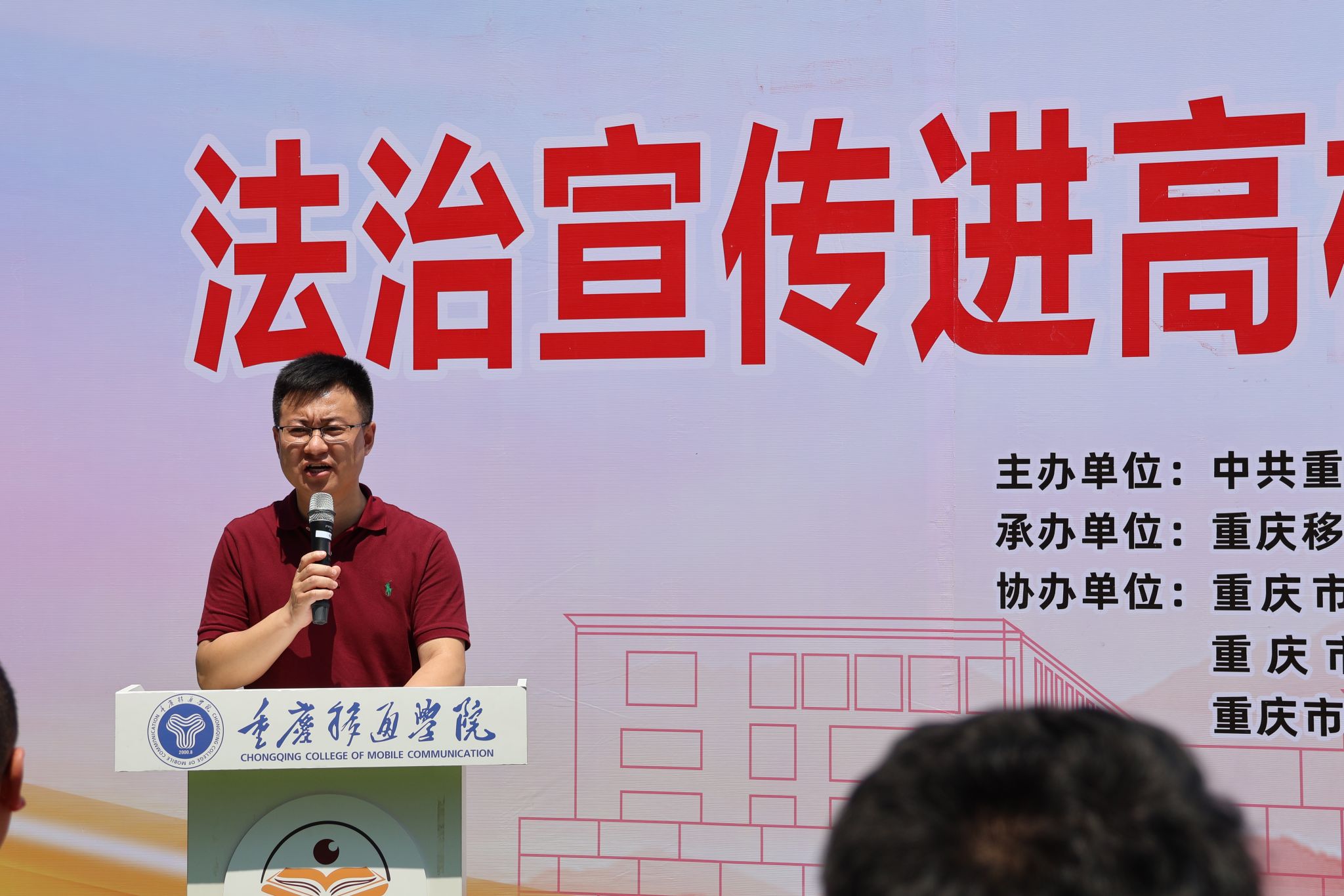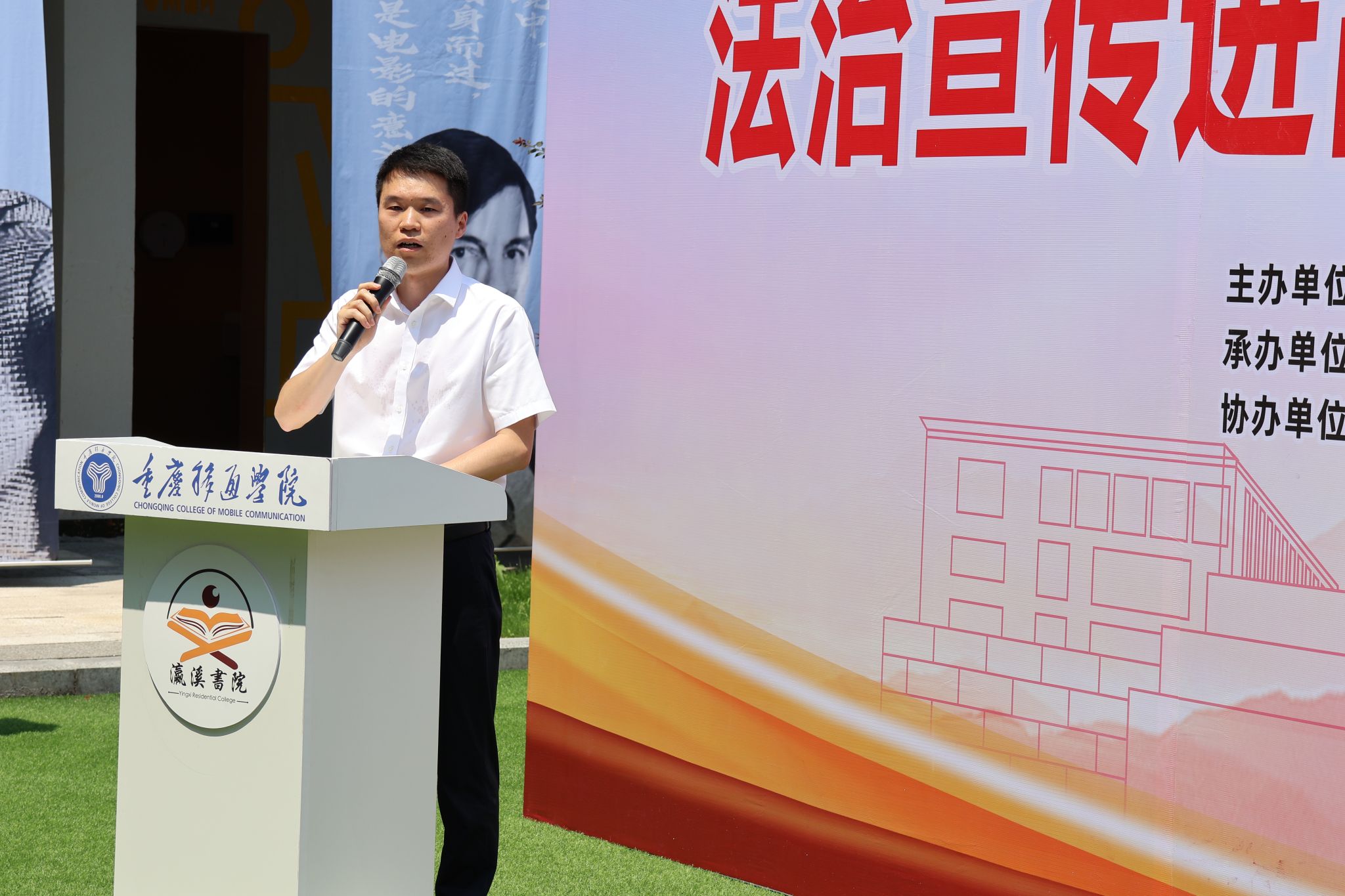 为深入学习贯彻党的二十大精神,大力弘扬社会主义法治精神,增强师生法律意识和法治观念,筑牢法治安全防线,5月17日,由中共重庆市綦江区委政法委员会(綦江区法学会)主办,重庆移通学院(綦江校区)远景学院承办,綦江区政法各部门、区教委协办的“法治宣传进高校•护航青春助成长”普法宣传教育活动圆满举办。綦江区委政法委政治处主任霍洋、重庆移通学院学生处副处长梁少锋、团委副书记蔡星宇、保卫处李小伟老师应邀莅临,远景学院副院长强杨、学工办主任郭淼、刘达老师等出席活动。