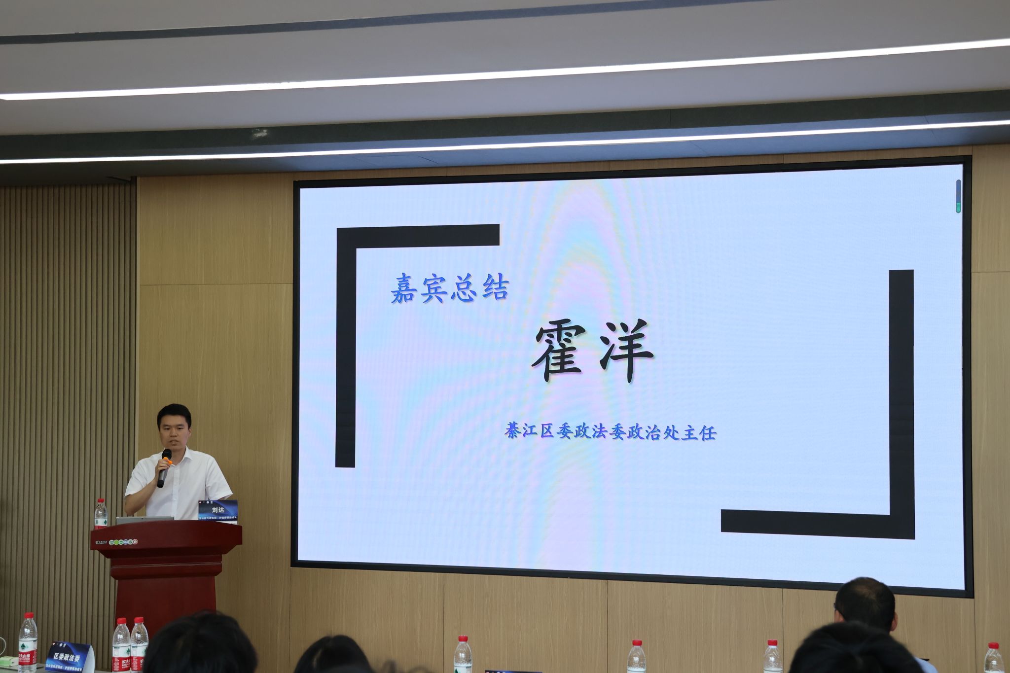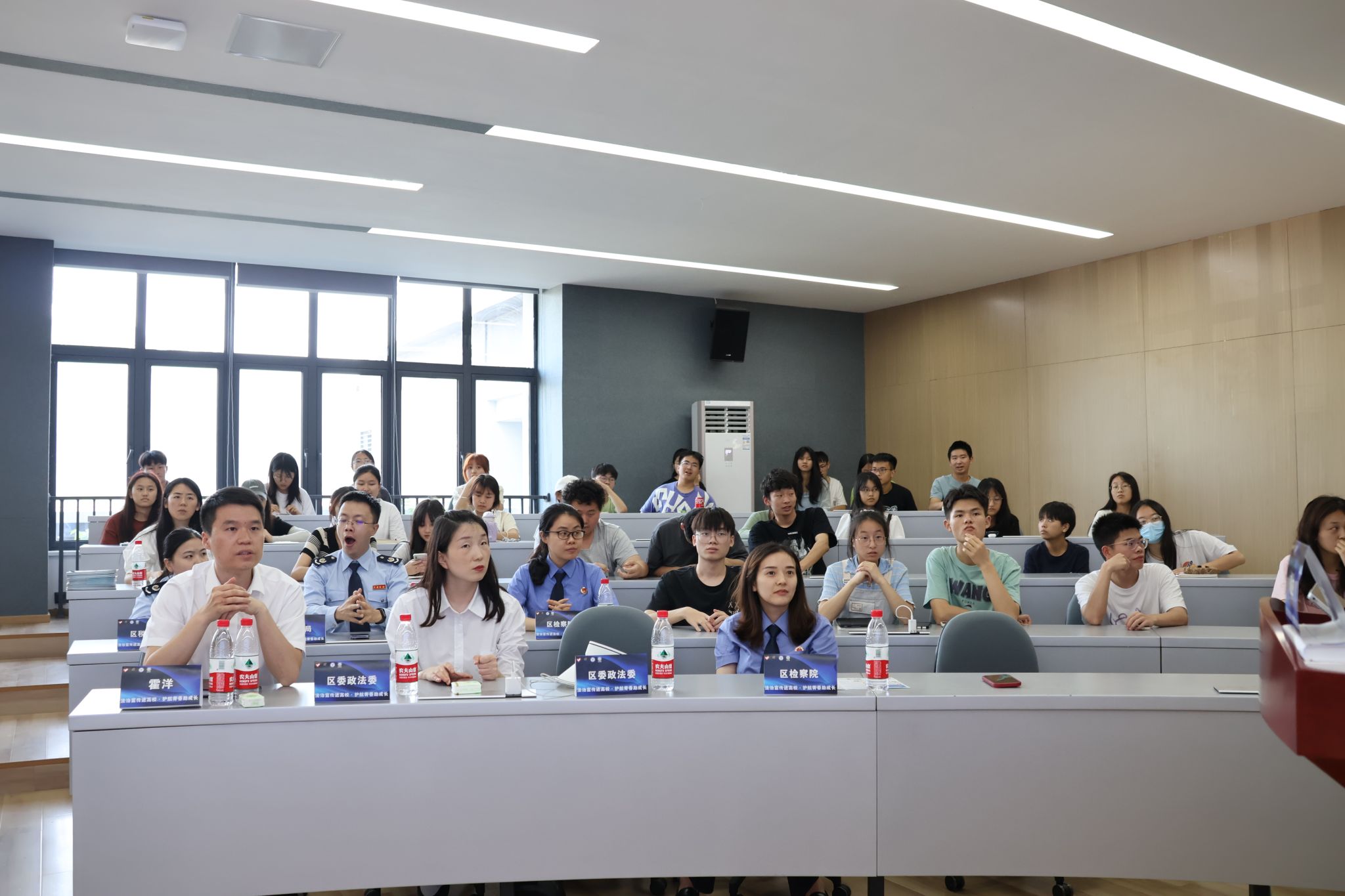 启动仪式上,梁少锋副处长首先对綦江区政法相关部门的到来表示诚挚感谢和热烈欢迎,而后从学校特色办学及远景学院育人特色着手,强调我校特别注重法治教育,积极响应国家号召,希望同学们能够在活动中深刻体会法治的重要性,增强自身的法律意识和法律素养。綦江区委政法委政治处霍洋主任表示此次活动为学生拧紧了法律的“安全阀”,提高青少年的自我保护意识,进一步牢固树立学生积极学法、严格遵法、言行守法的思想基础;同时綦江区也一直扎实开展普法与依法治理各项工作,后续将进一步与高校合作共同营造良好的法治环境。