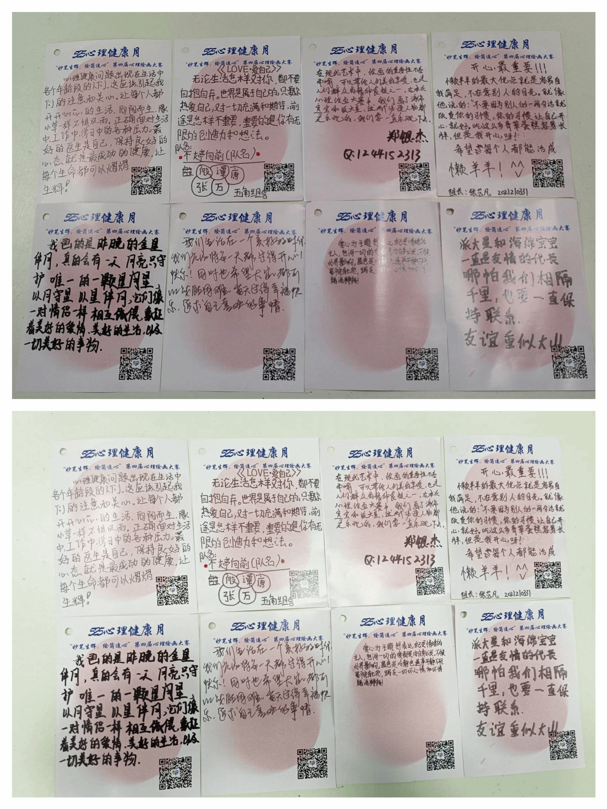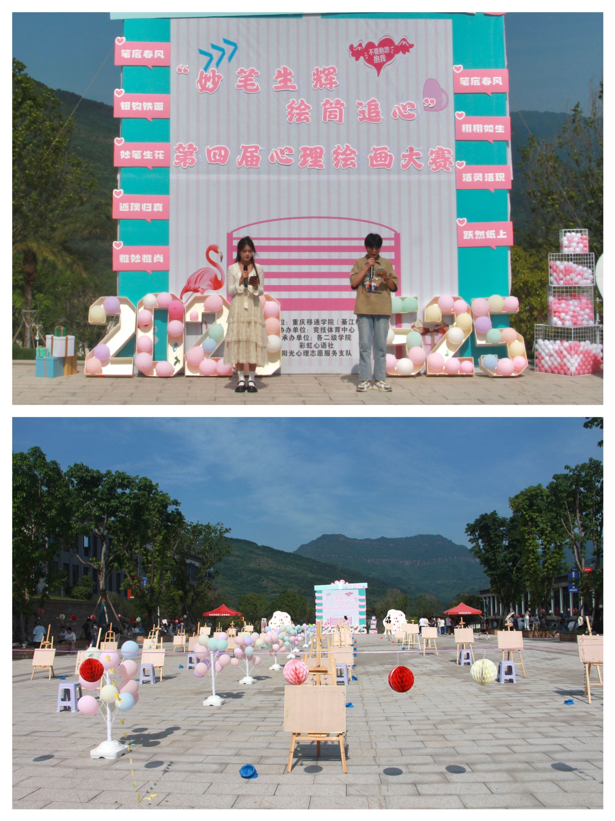 为提高大学生自我情绪管理、人际沟通交往等各方面能力,搭建一个供学生探索心理世界、学会合理表达自我的平台。依托我校“525”、“1125”心理健康活动月,学生处心理健康教育与咨询中心组织开展丰富多彩、形式多样的主题心理活动。继第一届“笔墨横姿,犹若初见”、第二届“绽放色彩,清凉移夏”、第三届“绘画有面、相遇有缘”后,5月24日,由满·心学生成长工作室、彩虹心语社承办的“妙笔生辉,绘筒追心”之第四届心理绘画大赛于图书馆前广场顺利举办。