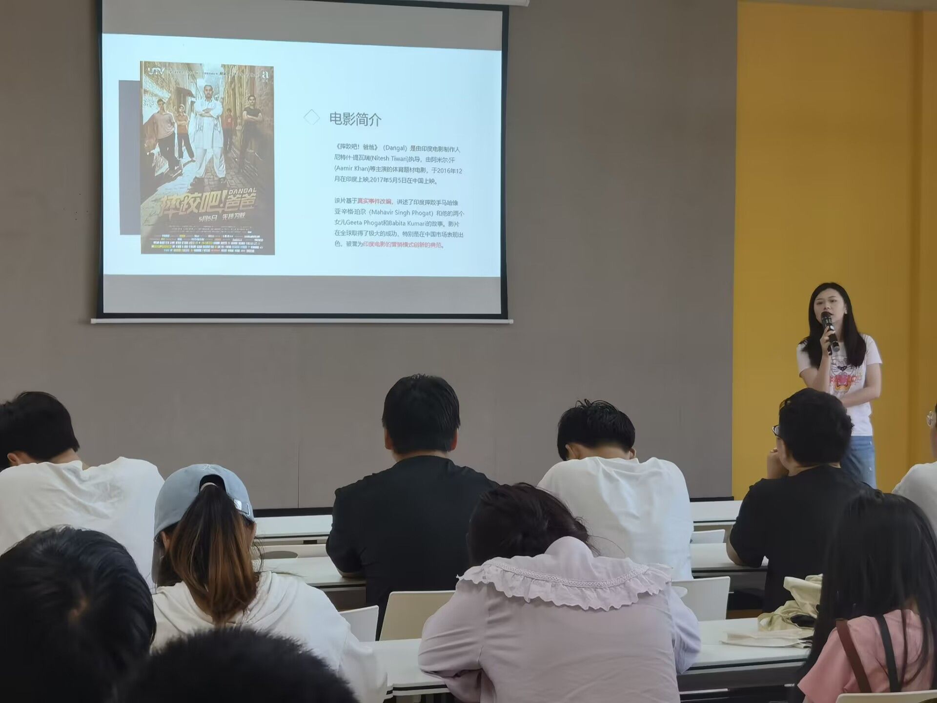 刘静蕊老师对电影《摔跤吧!爸爸》进行了文本解读。该片基于真实事件改编,主题为“女权”、“励志”与“梦想”,通过传达普遍的家庭情感和父爱,找到了全球受众的共鸣点。本片运用了印度国宝级演员阿米尔汗的影响力,因他发布了为影片减肥的视频,使得该片受到巨大关注,充分发挥了明星效应和口碑效应。