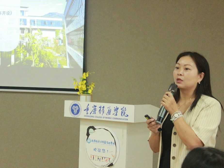 随后,刘贵容院长从学院专业特色衍生至专业分流、专业发展前景等,特别就目前綦江校区学生们就读的互联网金融专业、数字经济专业、供应链管理专业和管理科学与工程类专业这四个专业给家长们做了详细阐述,引得家长们拍照记录并频频点头称赞肯定。