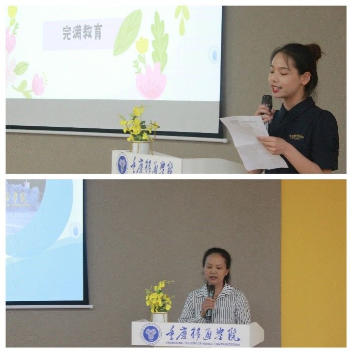 在分发“学生自制冰粉”环节后,2022级学生代表左原源同学向家长们详细介绍了自己进入校园以来参加和组织的活动,以及从中得到的成长,展示了在完满教育下学生的成长历程。同时,2022级学生家长代表郭乾芳分享了此次家长开放日自身感受,她表示很荣幸能够参加本次的家长开放日,在学校独特的培养模式下,自己的孩子不断积累经验也获得了使“自己不再平凡”的机会。