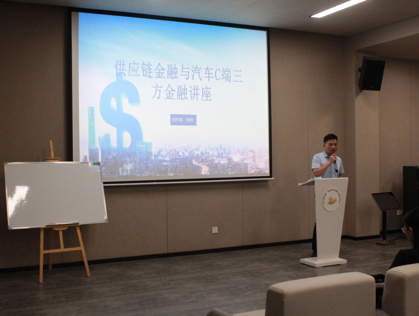 讲座中,何总先为大家介绍了互联网金融相对于传统金融的优势,并点出传统金融面临大量人员失业的问题,为同学们指明未来就业方向应当尽量选择互联网金融行业。随后何总从汽车C端金融、供应链金融、项目投融等多个方面并结合自身在鼎吉集团的工作经验为大家详细地讲解了“第三方金融”以及“供应链金融”的含义,深入浅出,使同学们能够紧跟授课进度。为能够让同学们成长为综合性人才,何总不仅为大家带来了专业知识的分享,还从销售、营销、运营、经营等多个方面分享职场经验,同时举用新员工在工作中遇到的几个常见问题来告诫同学们未来进入职场之后该如何做才能得到快速成长。