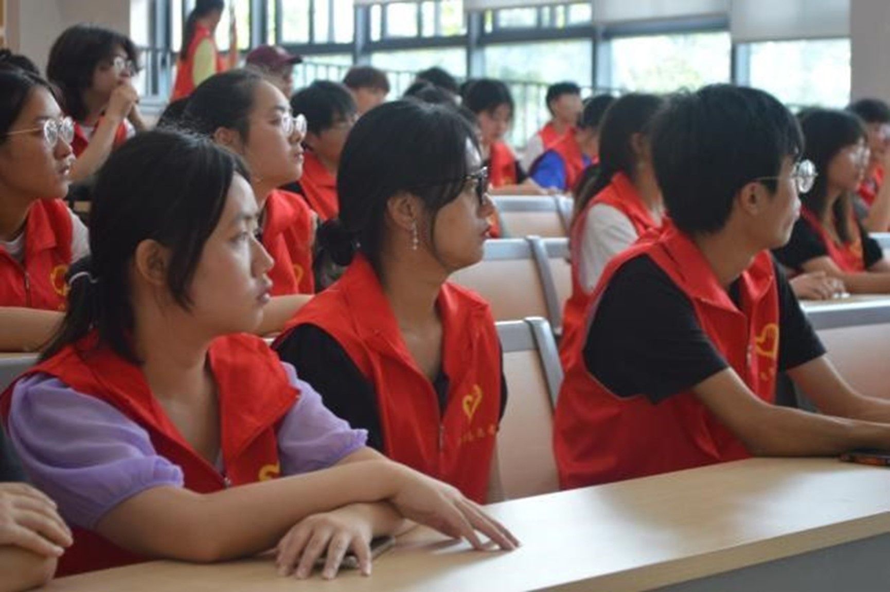 (志愿者认真听讲)