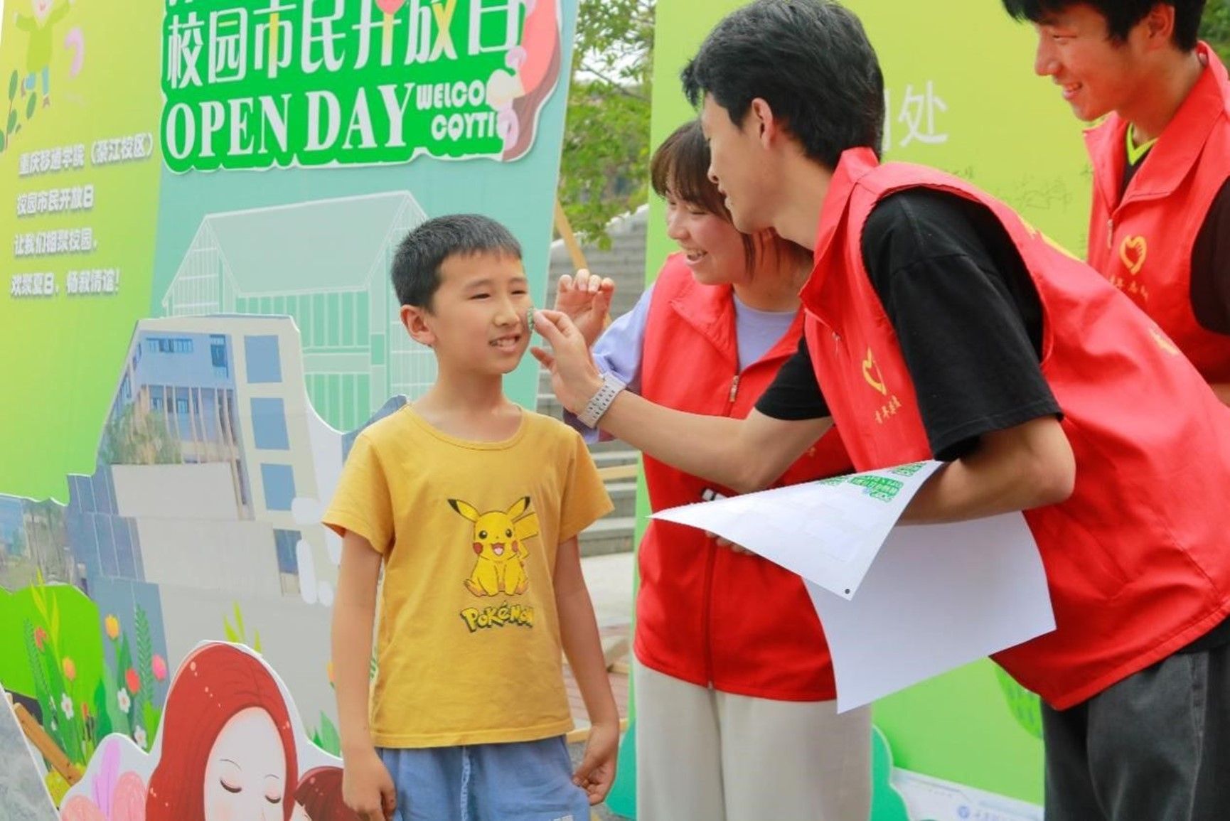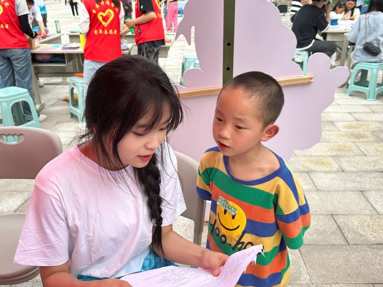 (志愿者为小朋友粘贴贴纸)