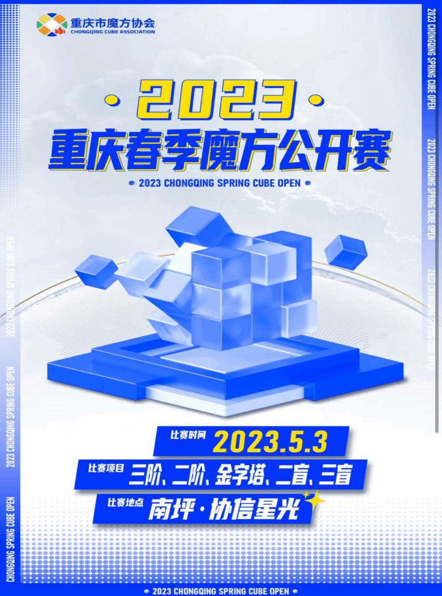 5月3日,由重庆市魔方协会主办的2023重庆春季魔方公开赛在重庆市南岸区顺利进行,据悉,本次比赛是重庆市魔方协会成立以来的第一次比赛,同时也是我们綦江校区魔方协会成立以来,第一次代表学校参加大型线下魔方比赛,本次比赛严格按照wca(世界魔方协会)的规则进行,让选手们体验到世界级的比赛氛围。