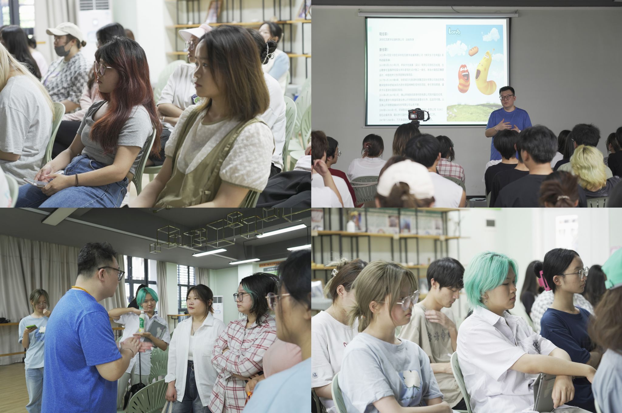 下午四点,《创意觉醒》主题讲座在横山书院HS110多功能厅展开,陈东浩导演作为本次讲座的主讲人,戏剧影视学院袁梦茹老师担任讲座主持人。首先,陈导向同学们分享了自己从动画师到动画导演的经历,并展示了其在动画影片《爆笑虫子在中国》中参与制作的实操经验,陈导说道,创意就是要超越界限,跳离现有框架、重新定义事物之间的关系,将既有的元素打破、拆解、重组,以呈现新的风貌、功能和意图。该片正是因为将中华传统文化融入到热门ip中进行创新,无论是影片中对中国传统文化的呈现,还是其在表现形式和表达方式上的创作,都是在探索一种“中国式”的创新样式,所以该片取得了较好的成绩。陈导强调了创意对于动画制作的重要性,并鼓励同学们要多思考、多观察、多尝试,要通过不断地实践和创新,才能不断地进步和提高。