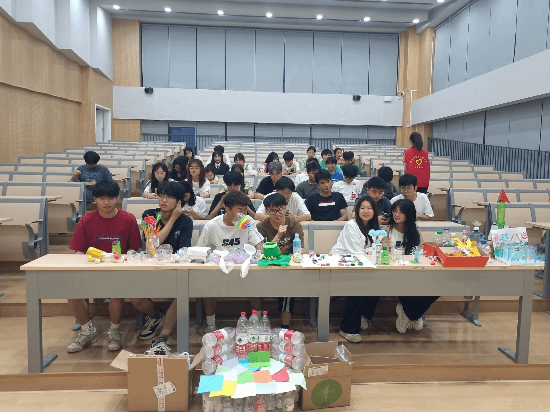 为加强班级凝聚力创造力,通过废物再利用,鼓励更多的同学在生活中充分利用每一件物品,开展“彩色瓶再造计划”主题班团活动。本次活动各班团需要齐心协力,创造出由塑料瓶制作而成的作品。5月21日,班级答辩在玉堂书院阶梯教室开展。在答辩过程中不乏看到各种各样富有创新环保的作品,其中获得一等奖的班级代表人指出,本作品的设计理念以“绿色环保,化废为宝,坚持实用"为指导思想,坚持团结合作,发挥特长,集体参与,以物喻人的活动初心制作而成。