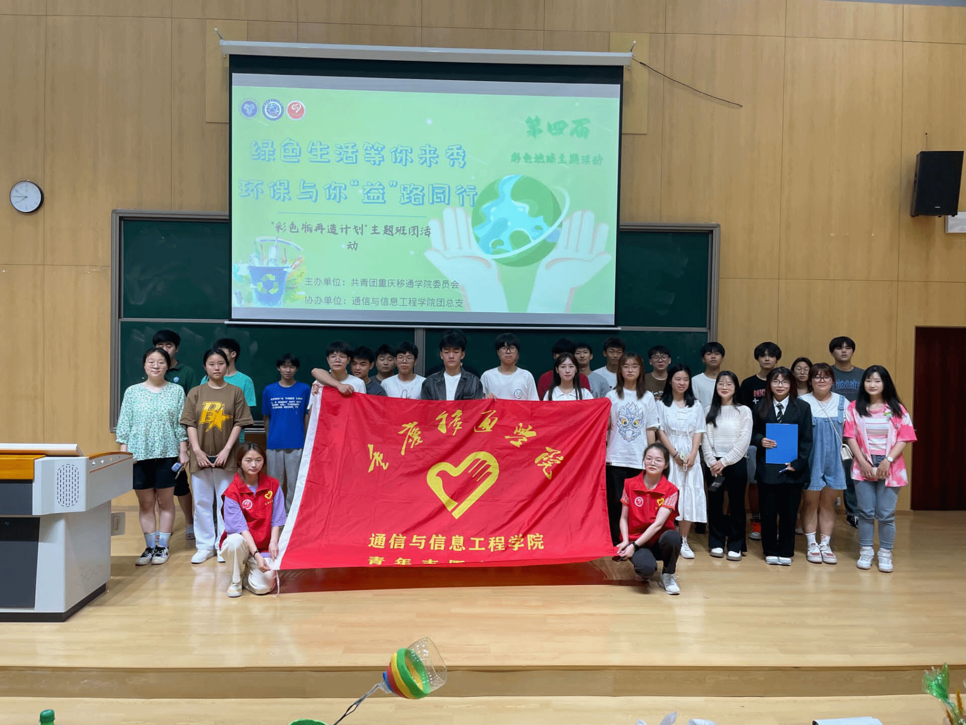 为加强青年大学生环保意识,自觉进行绿色生活行为,合理利用资源,增强大学生的社会责任感,将志愿做大做广,让更多的力量参与环境保护。通信与信息工程学院青年志愿者协会于5月14日至5月27日开展绿色生活等你来秀,环保与你“益”路同行——第四届彩色地球主题活动。