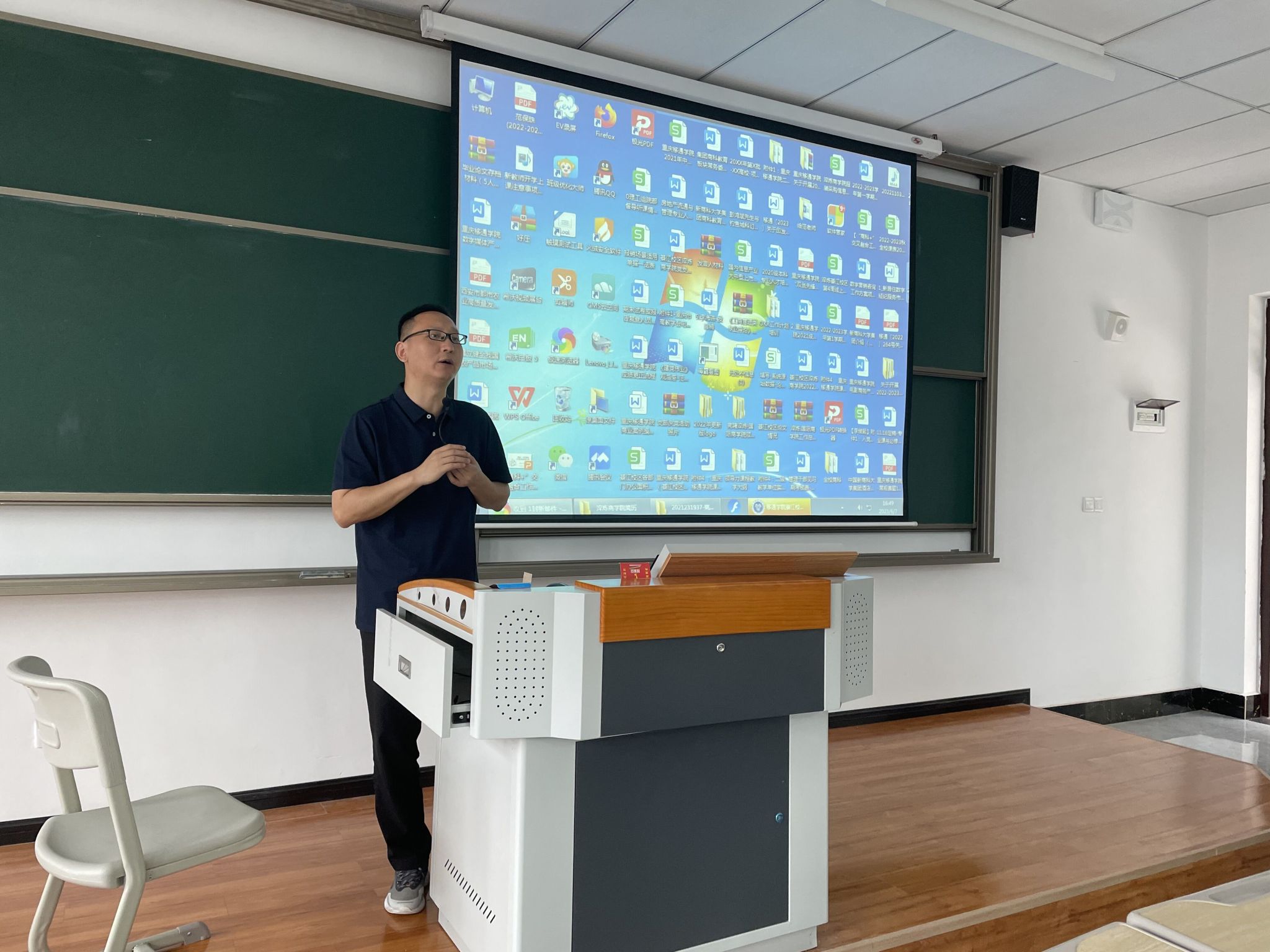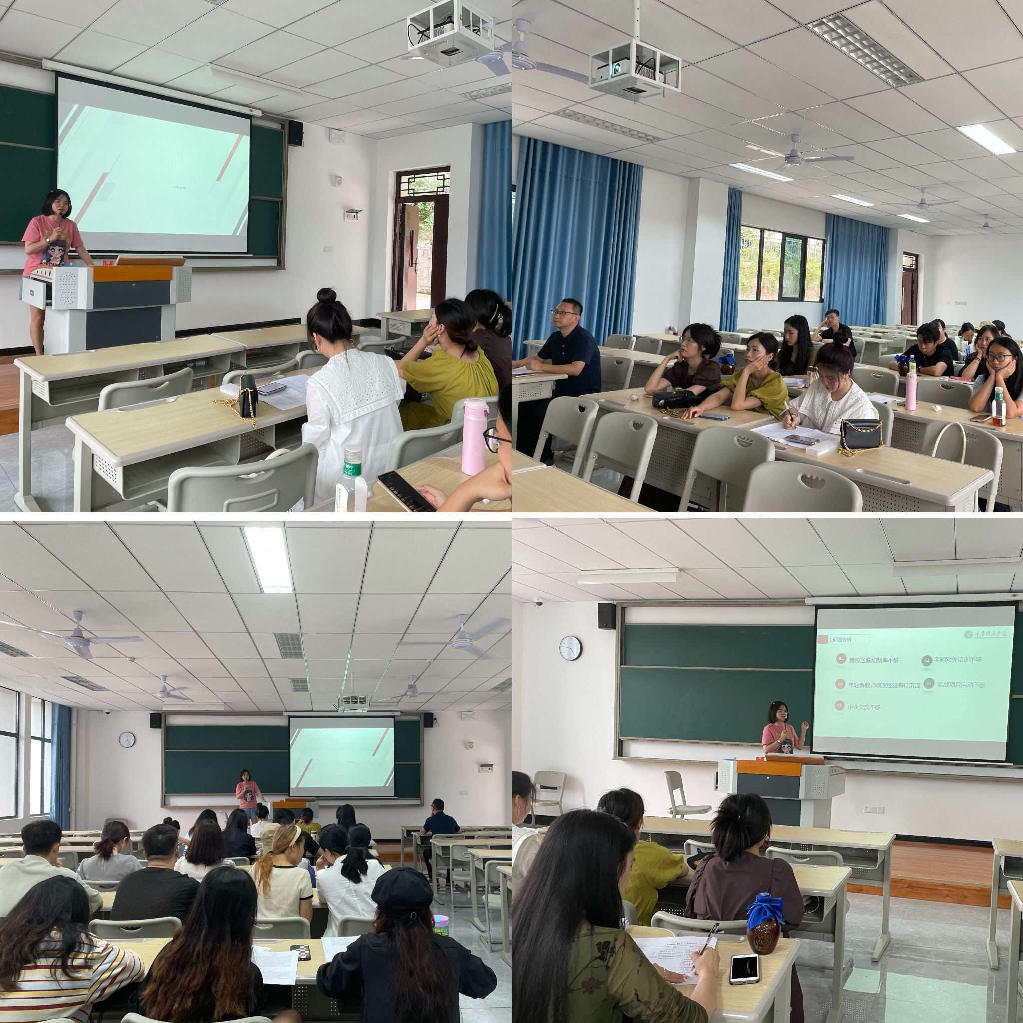 杜嘉主任首先对綦江校区全体教师本学期的工作成效给予了充分的肯定,并对本学期的教学工作、课程建设、课程融合、商道大讲堂、高管进课堂、四位一体双院制的融合、实战项目、师资队伍建设等各项工作进行了复盘。同时,也指出了工作中的不足之处,例如:跨校区联动频率不够、新进年轻教师课改经验有待沉淀、对外与企业交流较少、教师参加校外培训课程不够、实战项目开展有待推进等。最后对下学期的工作提出了针对性的计划与展望。