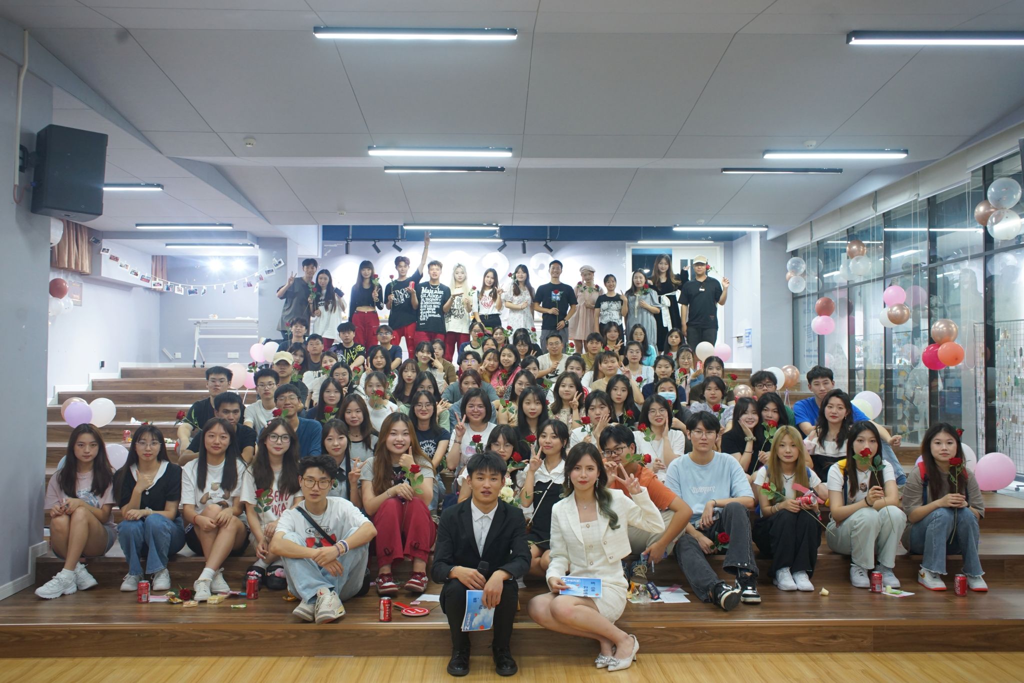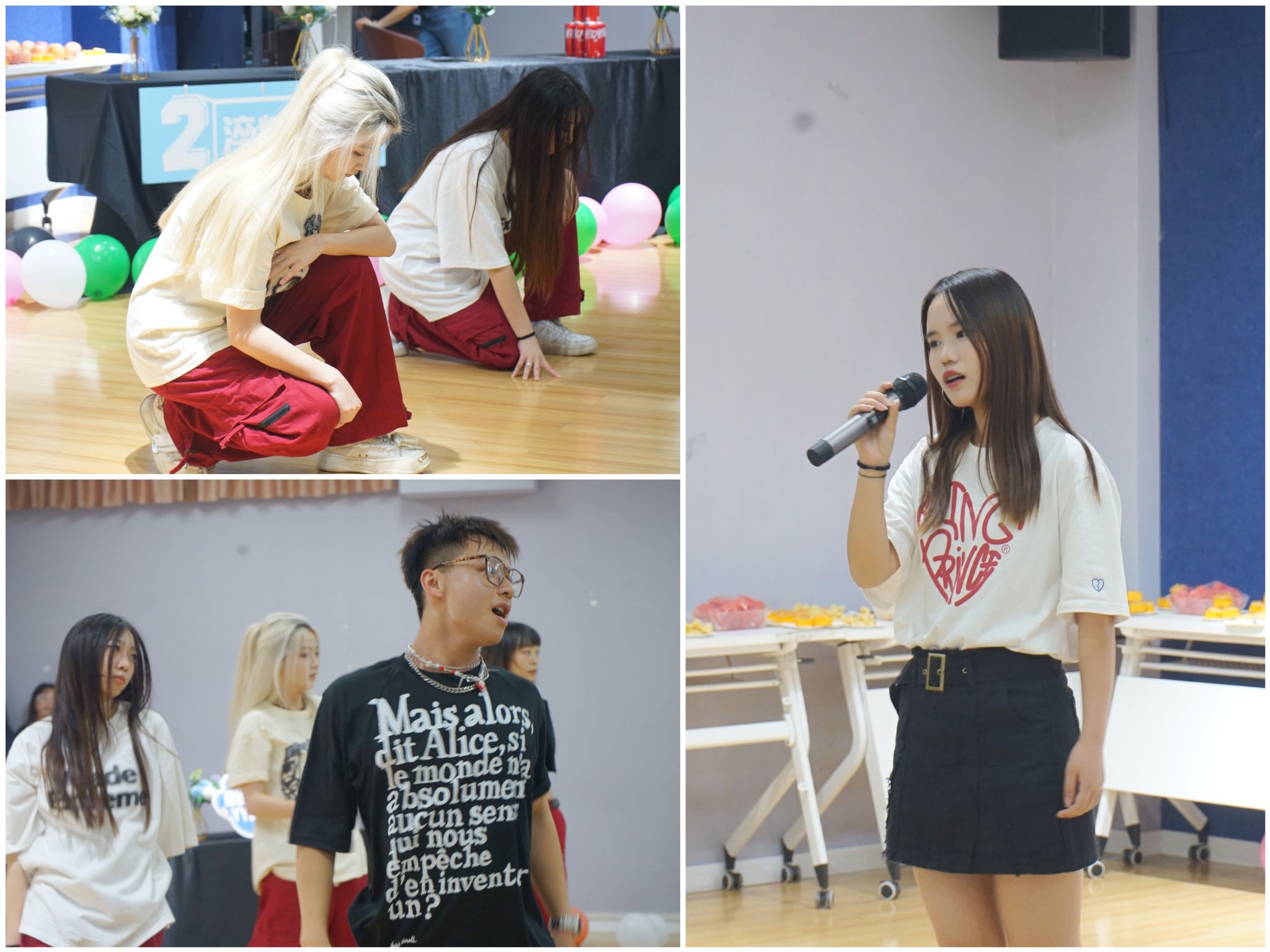 鲜花与气球陈列其中,零食与饮品应有尽有,干净整洁的布置是我们最为真挚的情感。一支充满活力的开场舞《last dance》和一曲动听的歌曲《梨花又开放》拉开了酒会的序幕,也表达了对老师和同学们的欢迎。
