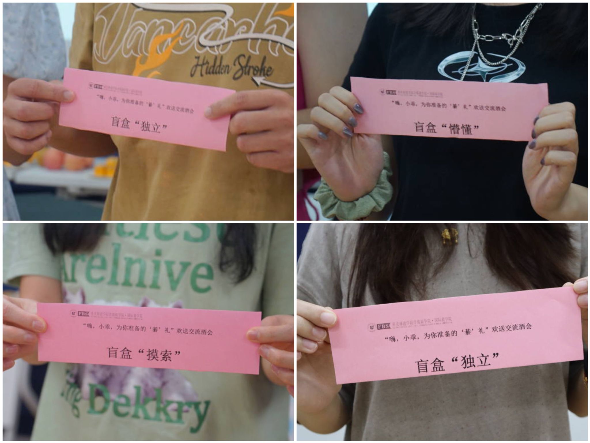 交流酒会中,我们为大家准备了盲盒大礼包:“初见”“青涩”“懵懂”“学习”“摸索”“成熟”“独立”盲盒,大家可以通过惊喜小游戏获取不同的盲盒。
