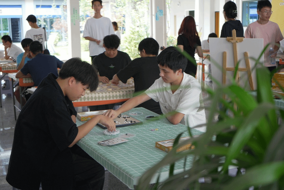 为丰富学生课余文化生活,加强同学们彼此间对棋类游戏的互动与交流,提高棋类文化的认知度和普及度,同时让移通学子直观的感受书院社区氛围与社团文化特色,增强决策力、家文化的认知。由学生社团管理中心主办、弈秋棋社承办的2023年社团文化艺术节弈秋棋社专场:“方寸棋盘,无限可能”棋艺体验日,于6月11日下午14:00在綦河书院几何空间火爆展开。马日象田局、五子连环计、围点打援盘……于一桌案之上,彰显对峙之势,威风气息不只于棋盘,也显其身!