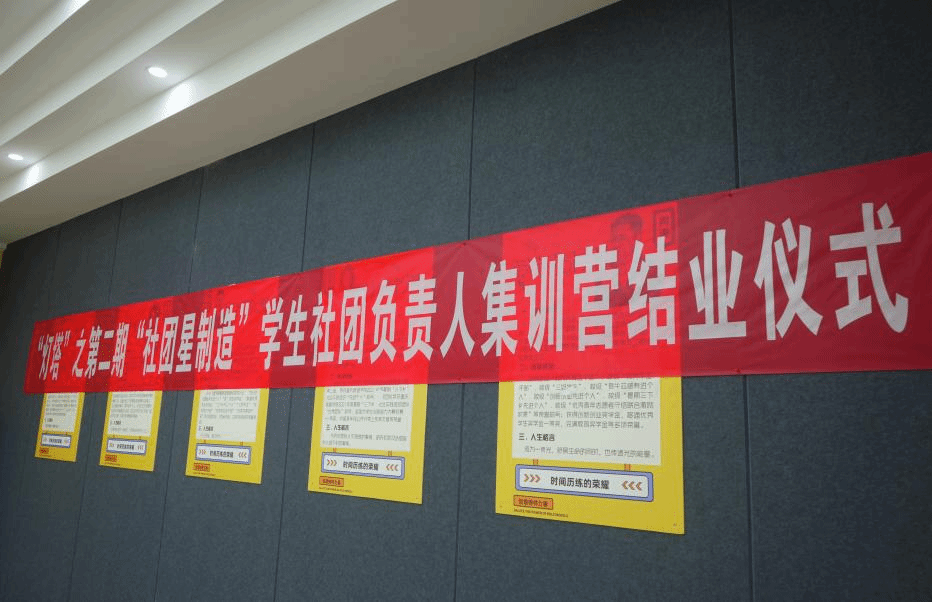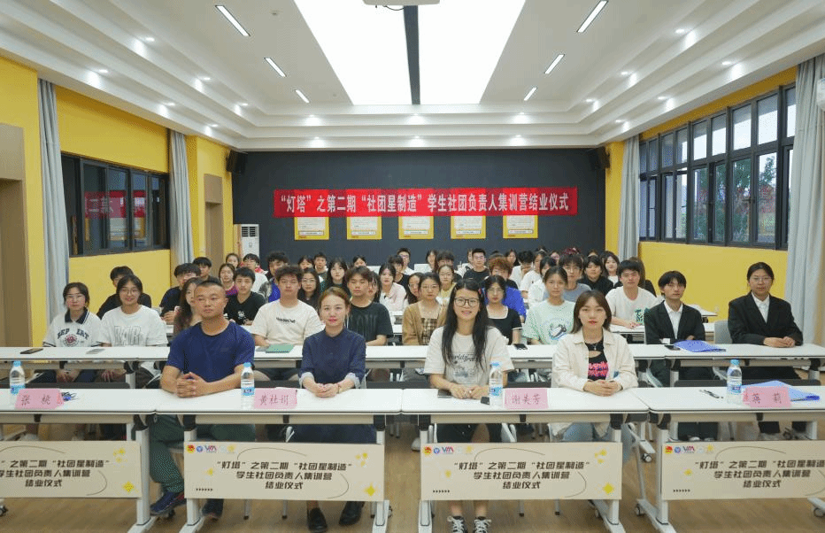 总有一个瞬间能打破迷茫,会有一颗繁星为我们而亮。2023年“灯塔”之第二期“社团星制造”学生社团负责人集训营结业仪式圆满落下帷幕。一张白纸本就没有价值,而真正能给白纸创造价值的是一支笔。未来“社团星制造”集训营也将紧跟社团发展,制定更多有趣、有效、有深度的课程,为社团负责人打造更开阔的交流成长平台。一次结业不是结束,而是社团星制造的新开始新一代的学生将以一批批优秀学员为榜样,为社团创造价值,做一支书写人生的锋利的笔。