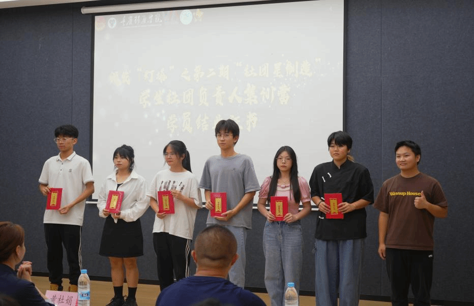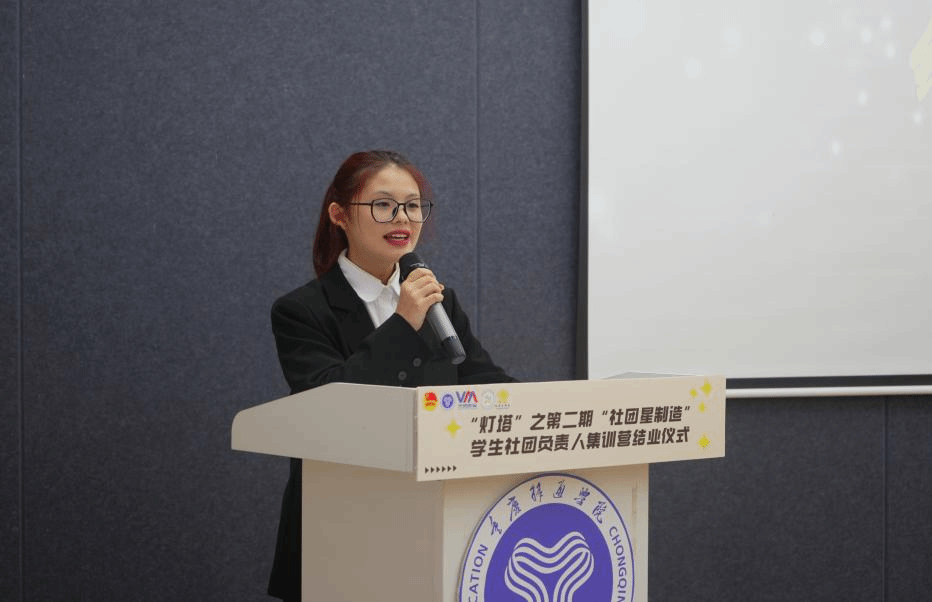 我校学生社团是以兴趣为导向、以梦想为指引,依托学生自身的兴趣特长组建的学生群体。“社团星制造”是在茫茫大海中看见天空中闪烁的一道微亮的光芒,指引你向目标不断靠近。在“灯塔”之第二期“社团星制造”学生社团负责人集训营中,学生社团负责人们互相学习、互相讨论,不断思考、不断进步,涌现出了一大批的优秀学员,他们对推动社团发展有着积极的作用。校团委蒋莉老师宣读“灯塔”之第二期“社团星制造”学生社团负责人优秀学员名单,并为他们颁发优秀学员证书。