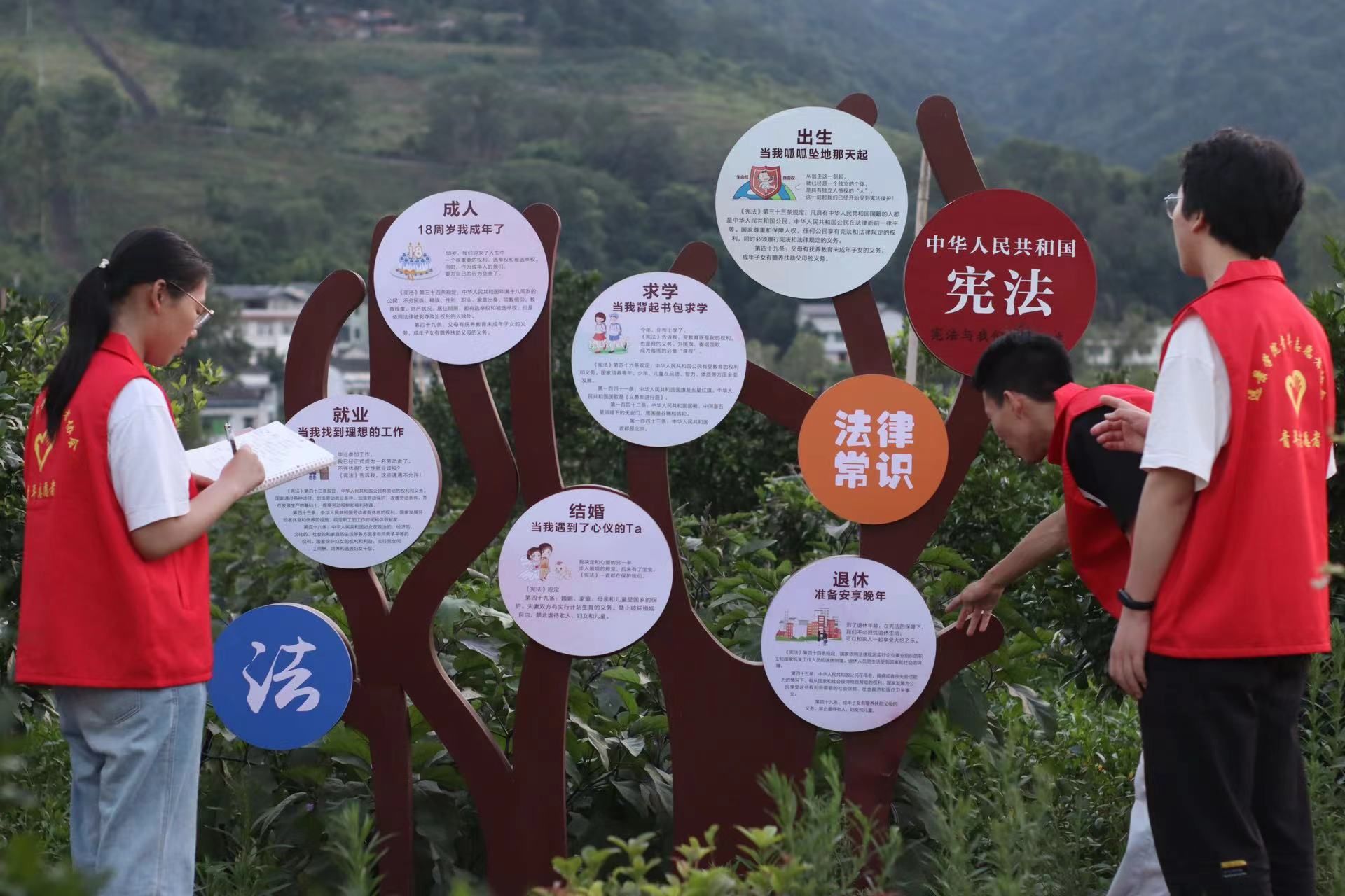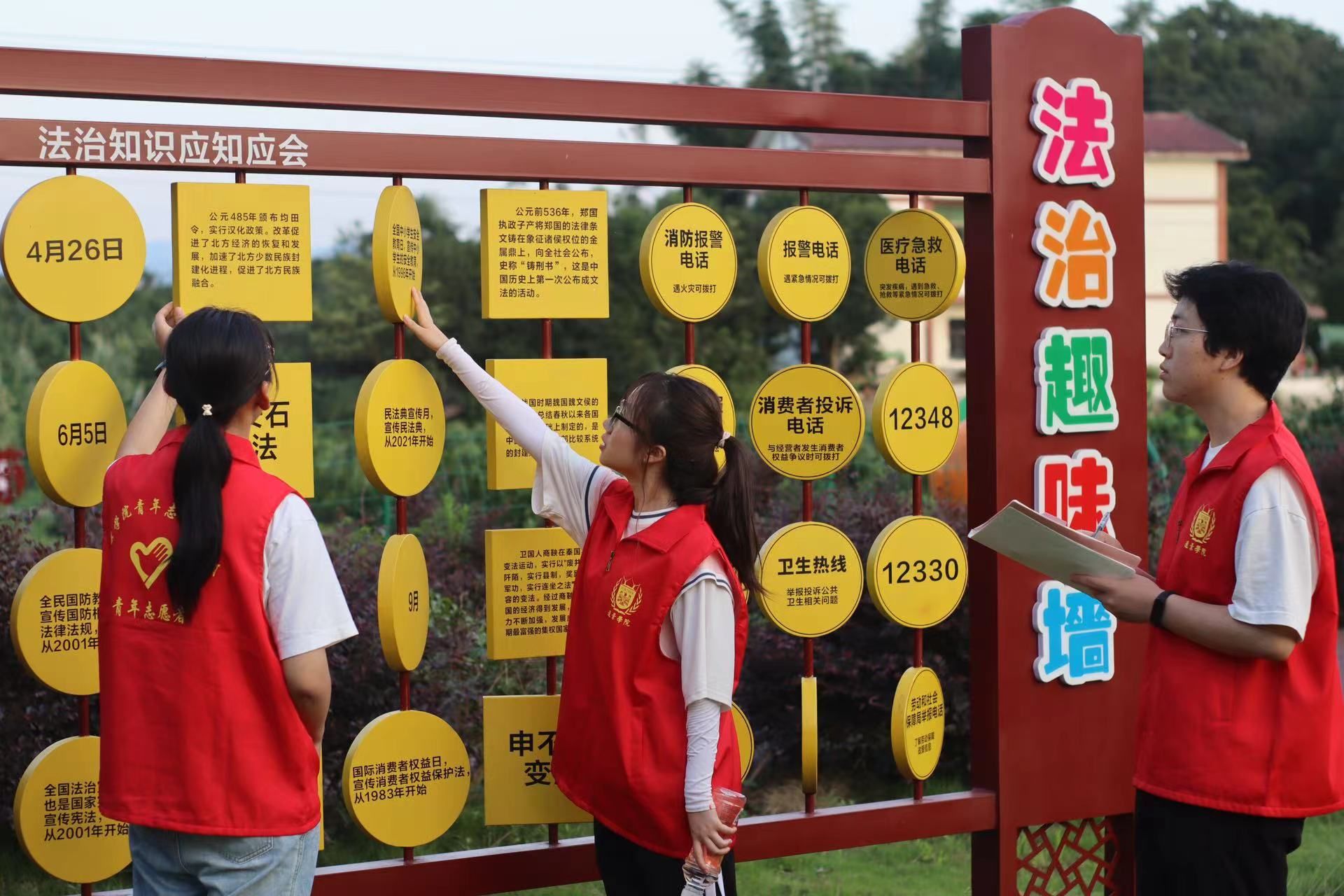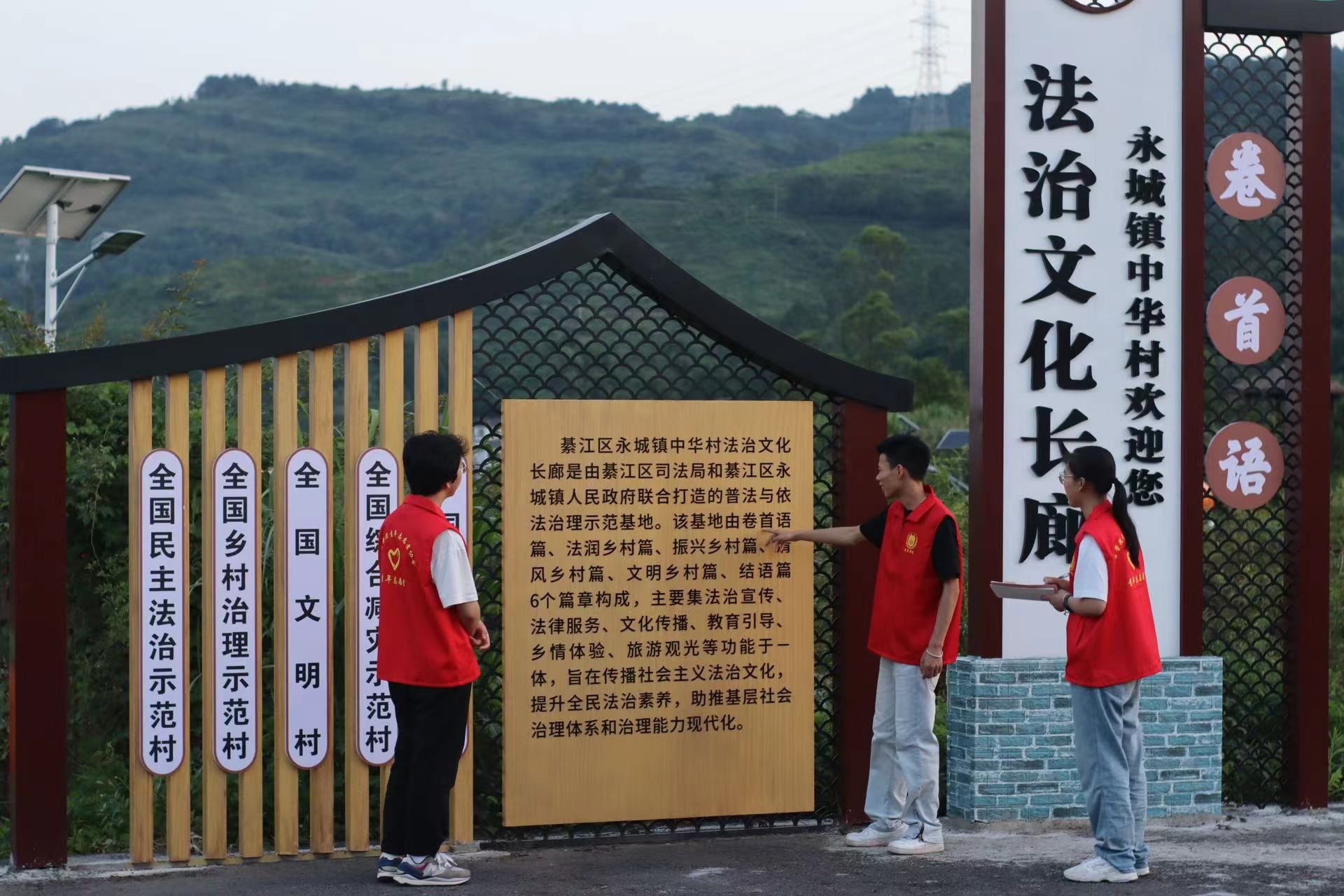 在本次调研中,“红浪”党史学习教育团还了解和走访普法宣传活动的相关场地,与当地相关负责人进行交流。镇司法局刘小涛向志愿者们介绍了中华村的法治文化长廊,作为当地的普法宣传亮点,与接下来团队开展的志愿活动主题高度契合,必将给当地带来一场难忘的普法活动。“红浪”党史学习教育团将和镇司法局合办在中华村的法治文化长廊对当地村民进行法治文化宣讲,志愿者们作为导游带领当地中小学生们踏寻法治文化长廊、感悟法治文化。最后采用寓教于乐的普法集市小游戏的方式向王良红军中学的同学们普及法治文化知识。听完团队的想法后,刘小涛表示赞许,普法宣传活动的开展可以有效促进村民及学生们的法律意识的提升,为社会和谐发展提供助力。
