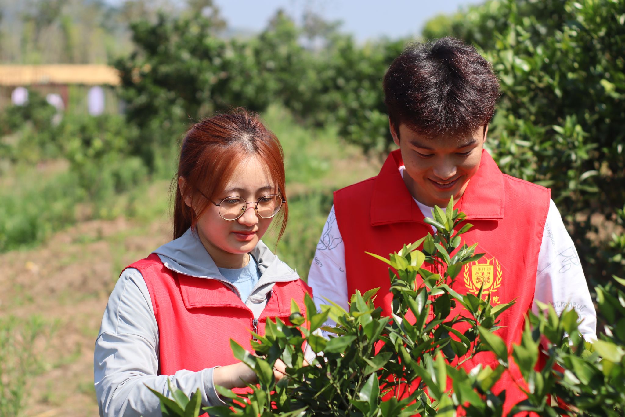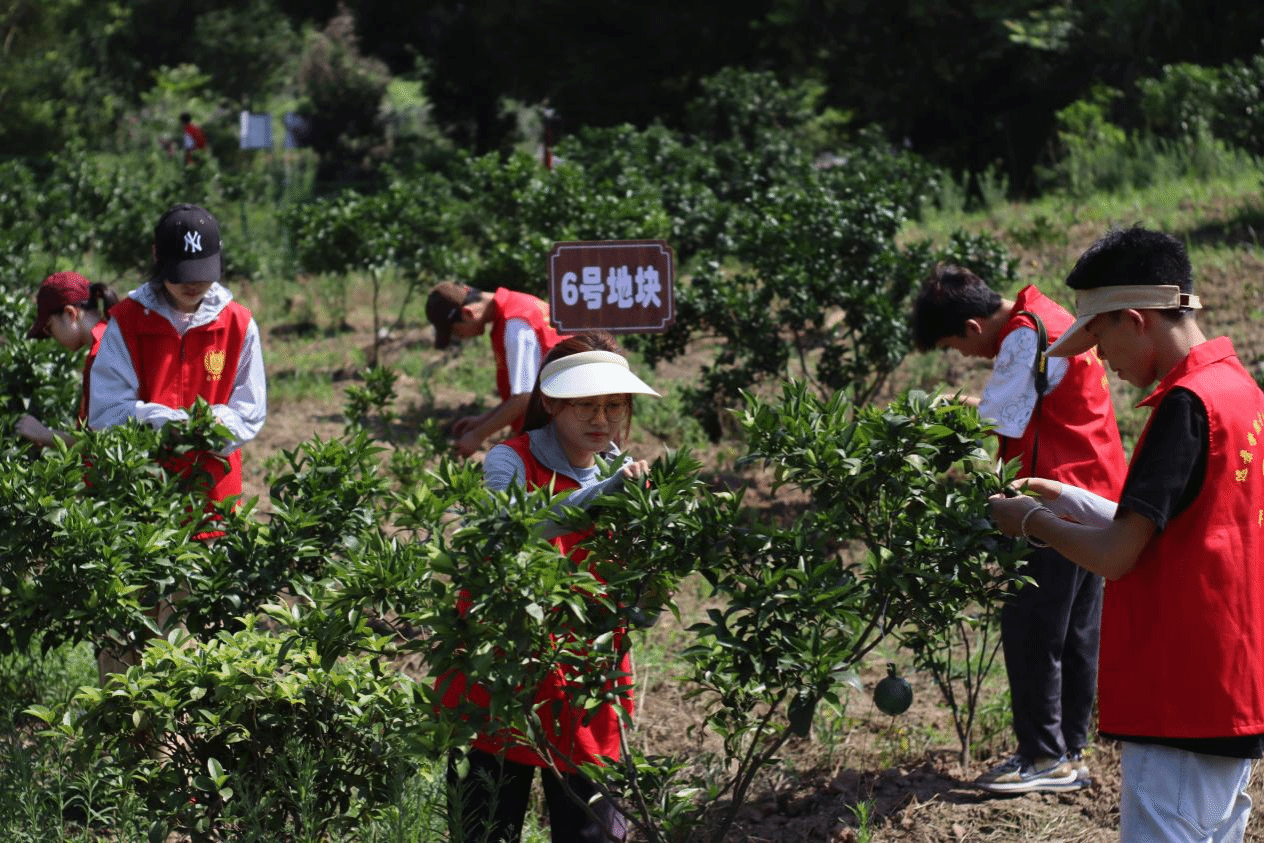前往中华村的果园,志愿者们实地考察了主要农产品“凤冠橘”的种植条件和销售渠道,并与柑橘园园主刘婆婆进行了交流,刘婆婆向志愿者们介绍了凤冠柑橘,其具有柔软多汁、香甜可口、营养丰富等特点,近年来深受游客的喜爱,给当地带来极高的经济价值。队长覃雨涵和指导老师陈沁等与刘婆婆商讨志愿活动内容细节。团队将秉持着以个人劳动助力乡村振兴的理念,用切实的亲身体验感受农业劳动的辛勤,支持乡村特色产业发展。