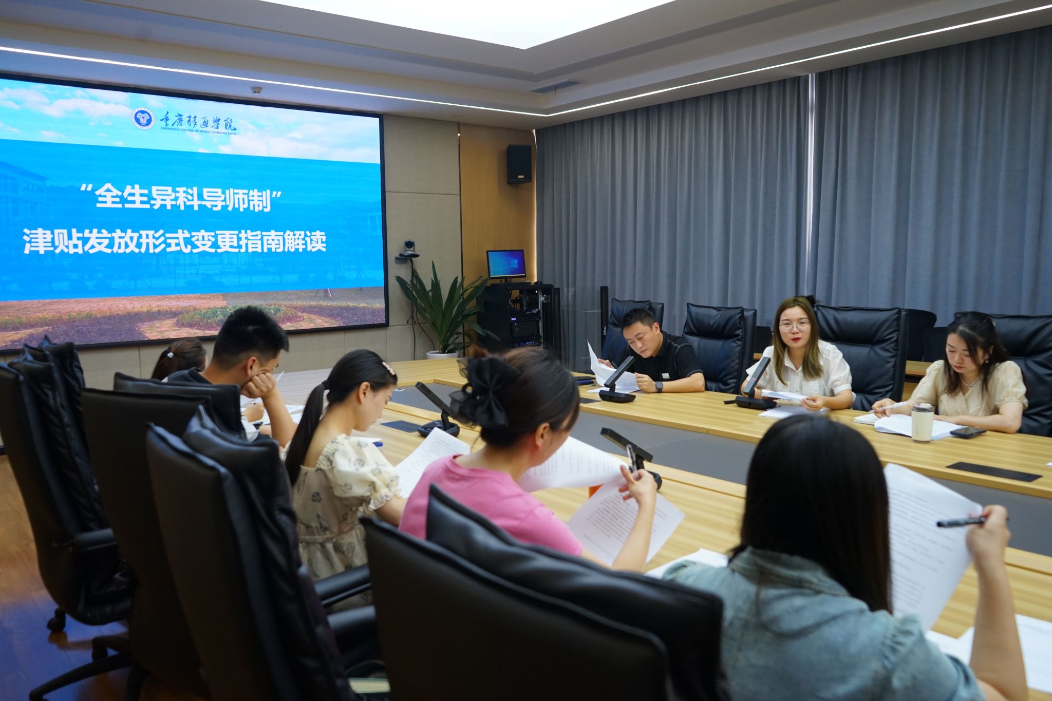 最后,曹玉姣副部长针对异科导师津贴发放形式更改的指南,向全体参会的领导、老师们讲解了后期津贴发放形式的具体变化,并征求了反馈意见。同时,对2022—2023学年“全生异科导师制”考核评优方案和2023-2024学年綦江校区“全生异科导师制”招募计划进行了讲解。之后,全体参会老师就两项专项工作在实际推进过程中遇到的问题和困难进行探讨和交流,并表示书院部虽为牵头部门,但专项工作涉及面广、牵扯人员也多,希望以后各单位与书院部保持沟通交流,互相学习,共同做好两项专项工作。