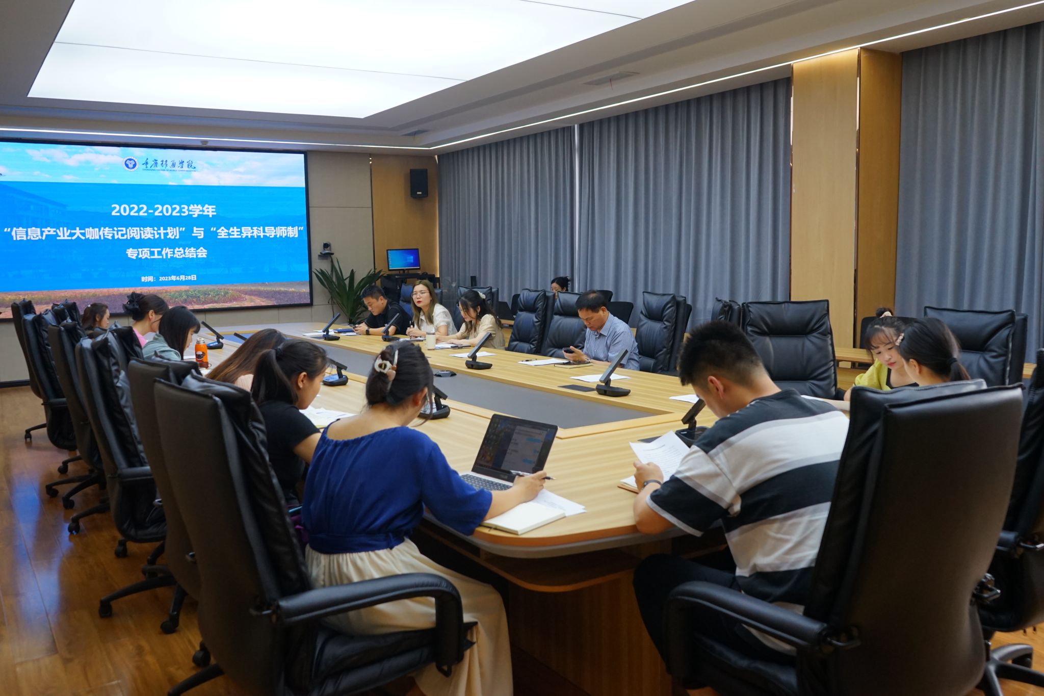 为全面落实“信息产业大咖传记”和“全生异科导师制”工作要求,凝练学年专项工作的育人成果,沉淀工作经验,帮助导师更好地进行学生分层分类指导,綦江校区书院部牵头各学院,于6月28日上午10点,在图书馆424会议室召开了“信息产业大咖传记”与“全生异科导师制”专项工作学年末总结会,会议由书院部副部长曹玉姣主持。