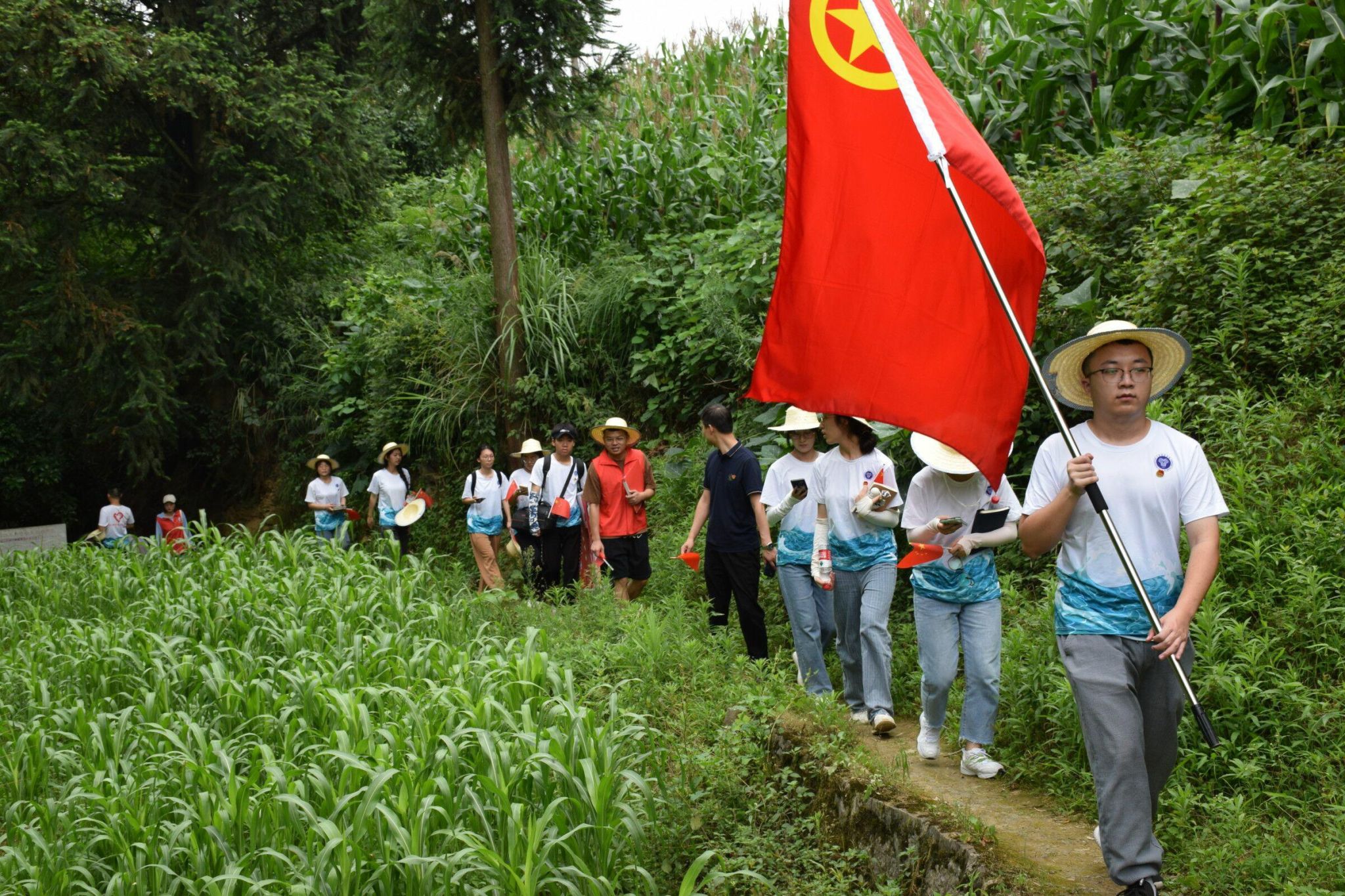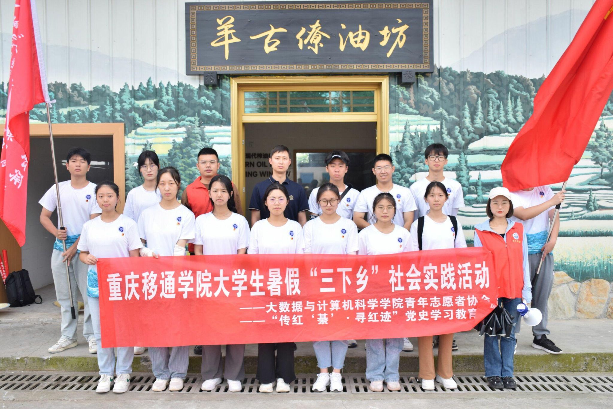 为有担当多壮志,初心坚守更映红。党和国家永远是一座最明亮的灯塔,为我们指明方向,暑期三下乡第二日6月28日早上,重庆移通学院“传红‘綦’·寻红迹”党史学习教育团向着同一座灯塔进发,在綦江区安稳镇羊角村开展了一系列党史学习教育。作为新时代青年志愿者,与其坐而论道,不如起而行之,志愿者们将汗水挥洒在羊角村这片热土上,在这里寻找长征的踪迹,传承长征的精神。