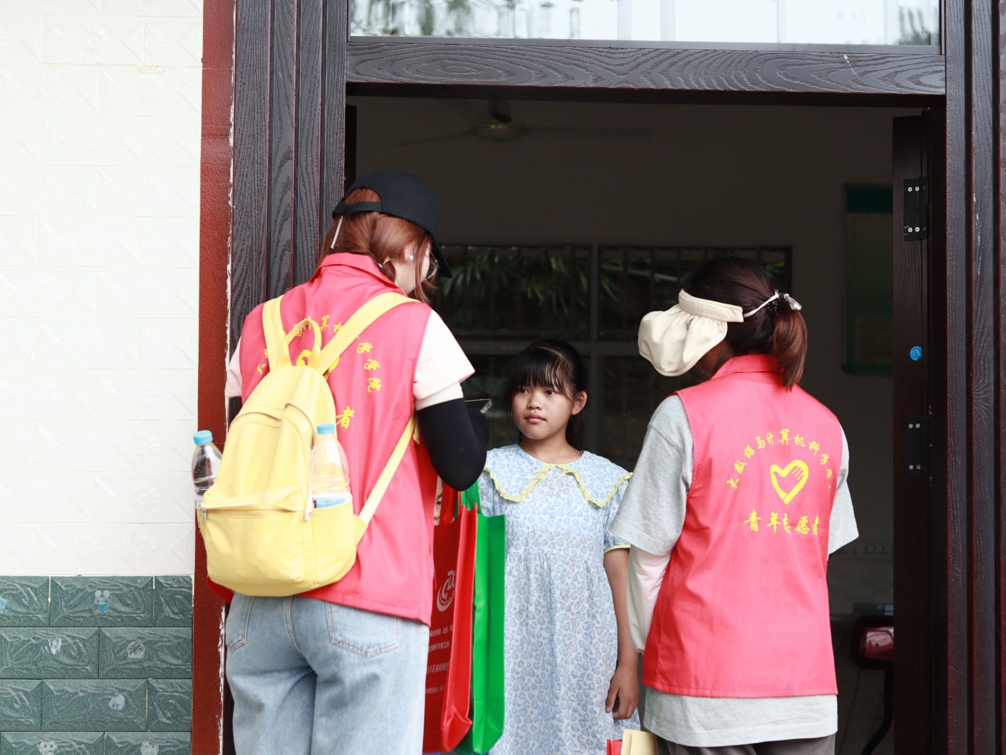 山风吹动队旗飘扬,农村风光旖旎,队员们马不停蹄,沿着盘山公路一路往东北方向出发,经过了五公里的徒步过后,抵达了北门村。团队快速划分为2个组6个小分队后,村委工作人员和队员们分头行动,深入到村民家中开展禁毒防艾宣讲。
