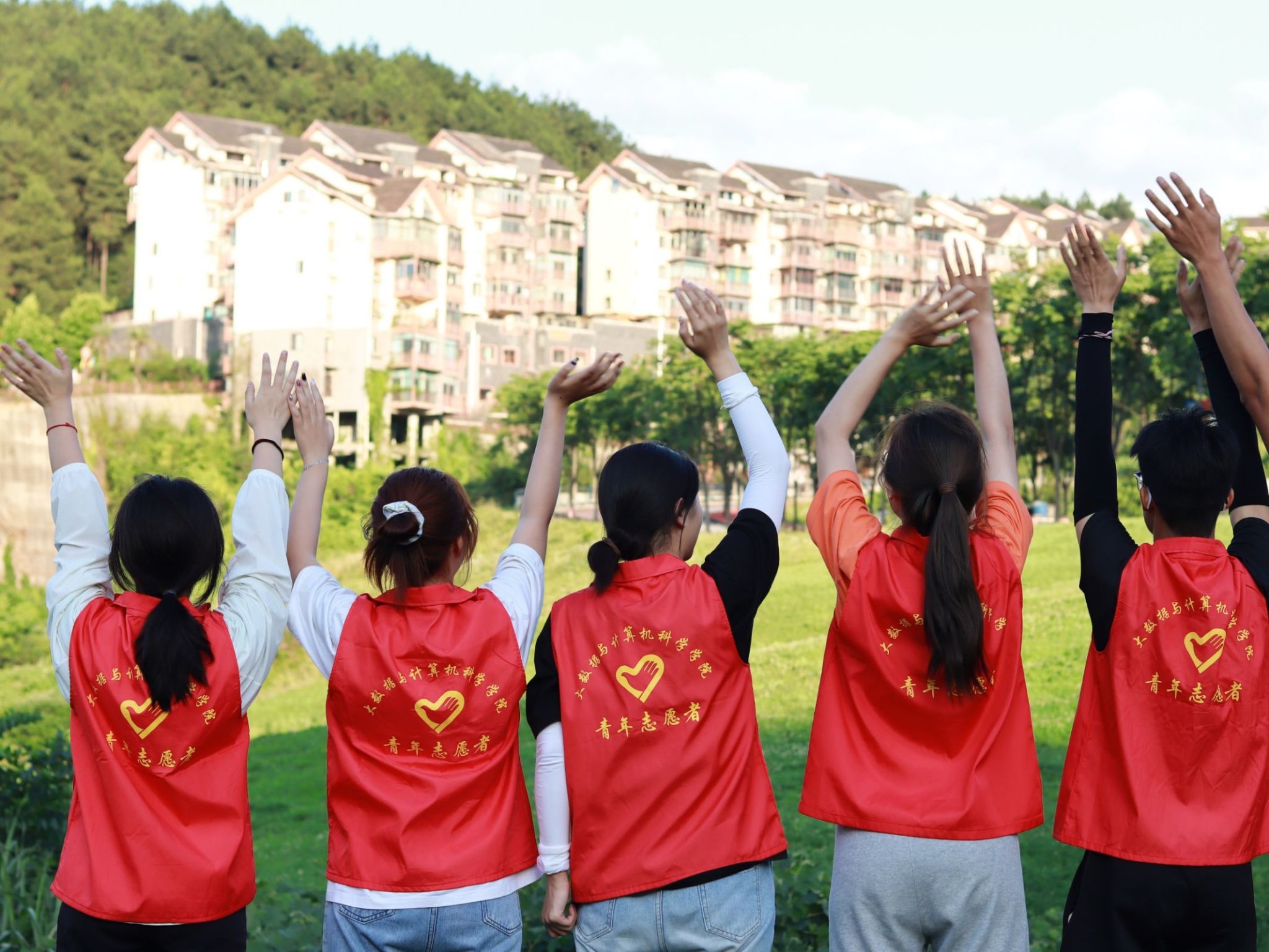 清晨,东方冉冉升起的太阳,为大地披上缕缕霞光。志愿者们齐聚在重庆移通学院的校门口,穿着整齐的红马甲,带着统一的帽子,喊出“2023年暑期三下乡我们来了!”朝气蓬勃、向阳而生,展现着青年志愿者最美的风采。合照结束后,志愿者迈着坚定的步伐前往黑山镇。