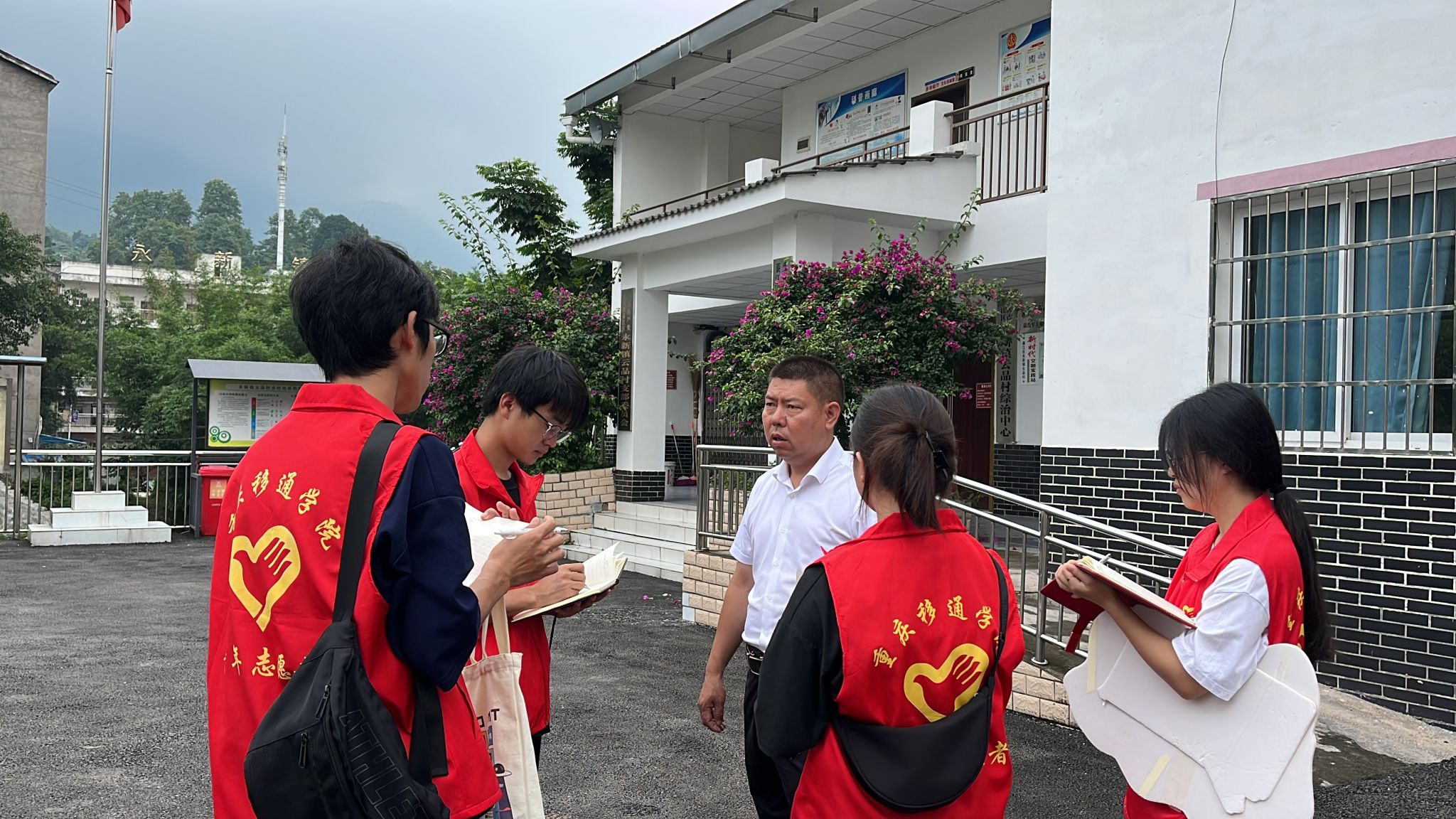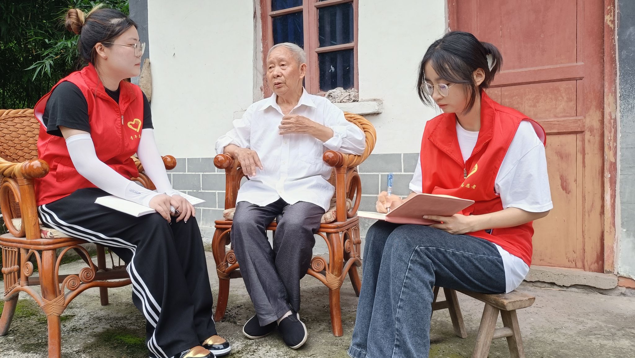 (图为志愿者与胡书记访谈)