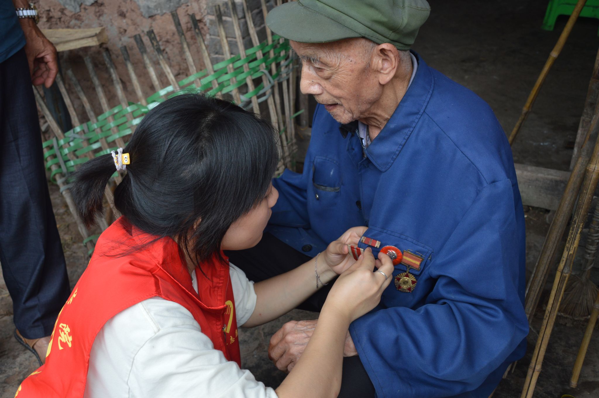 (图为志愿者与老党员和退伍军人)