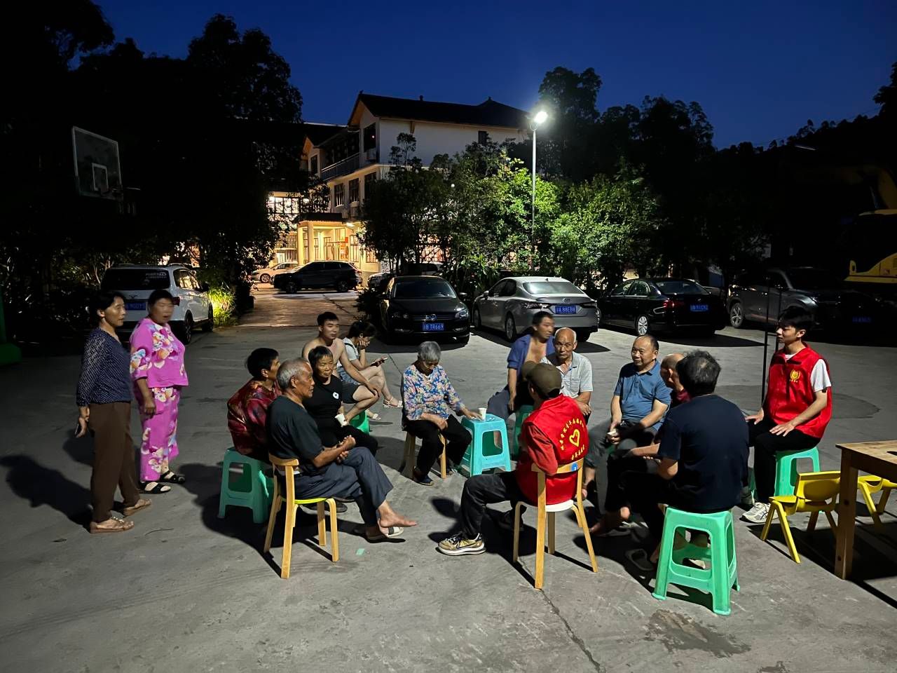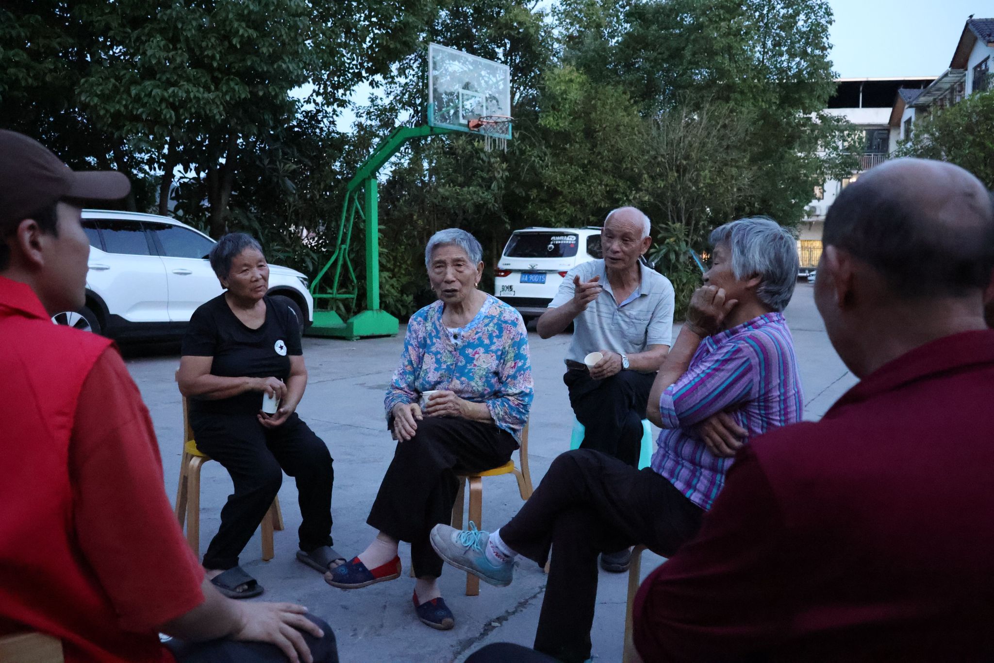 晚饭后,农家乐的大坝上摆起了龙门阵,将关于中华村的过往故事,勾勒出了一幅红色记忆的图景,激发大家对党的热爱与敬仰。老党员和村民们围坐在一起,打破了时间和空间的界限,共同走进红色岁月。