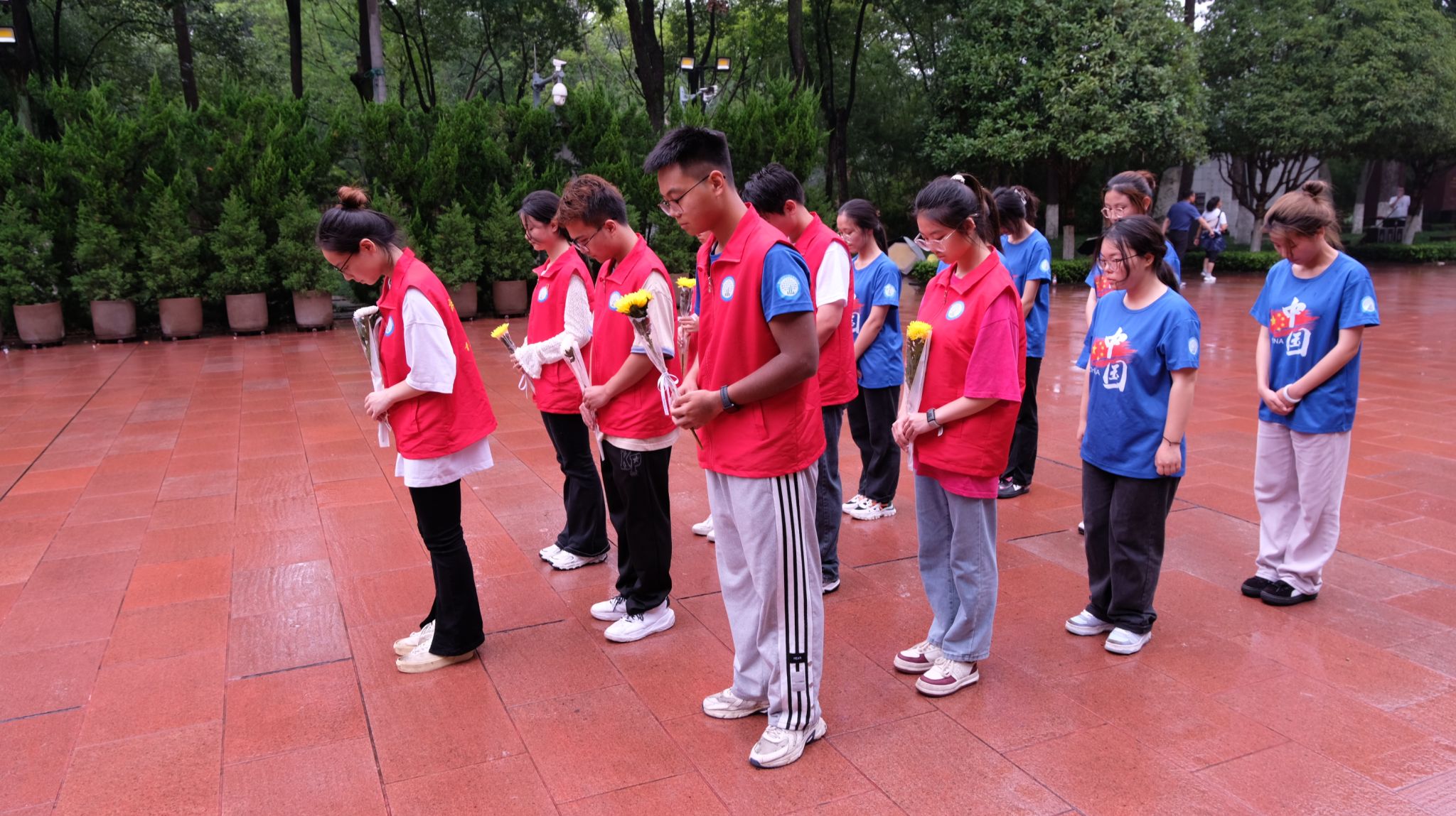 清晨,山雾朦胧,迎着斜风细雨,“小红砖”党史学习教育团的志愿者们出发前往“长征”第一站:歌乐山烈士陵园。高耸的烈士墓碑屹立在广场中,墓碑是可触摸的历史,能够给悼念者带来更为直观、震撼的感受。“小红砖”的志愿者们于墓碑前肃立默哀,怀着沉痛的心情为牺牲的革命先辈依次献花,他们眼神坚定,对革命先烈承诺到“这盛世中华由我们继续守护”。