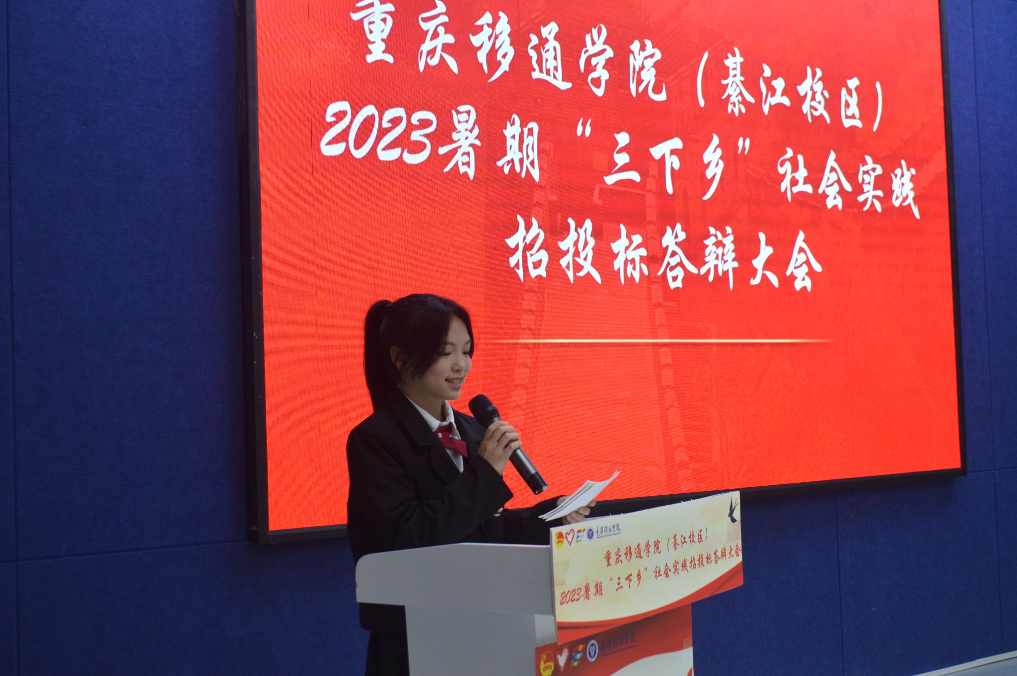 盛夏将至,青年似火,为深入学习贯彻习近平新时代中国特色社会主义思想,落实习近平总书记关于青年相关工作,綦江校区团委于6月16日下午14:00在綦河观涛多功能报告厅举行2023暑期“三下乡”社会实践活动招投标答辩大会,29支队伍分别围绕党史学习教育团,理论普及宣讲团,国情观察实践团,乡村振兴促进团等11大类进行申报。本次大会特邀綦江校区党委委员、学生处副处长梁少锋老师,綦江校区团委副书记蔡星宇老师,书院部副处长曹玉姣老师以及各学院团总支书记,学工办主任担任评委。