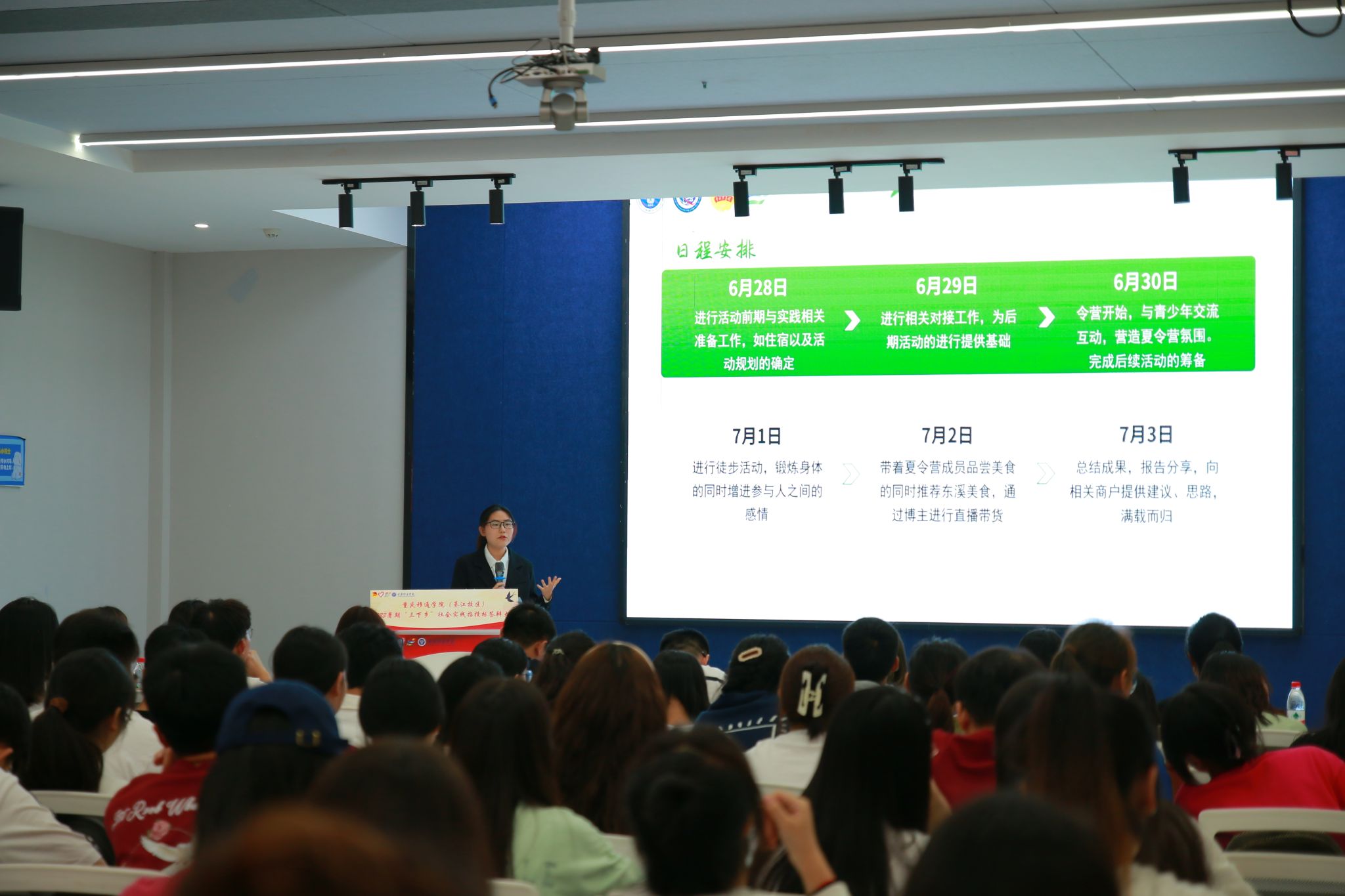 答辩大会中涌现一些十分有特色、有创意的队伍,如以党史学习教育为主题的“传红‘綦’·寻红迹”党史学习教育团,以党史主题宣讲、挖掘党员故事等为出发点,重走红色足迹,追溯红色记忆;以禁毒防艾宣传为方向的“星光”禁毒防艾宣讲团将继续科普和宣传禁毒防艾知识为起点,针对各类人群制定不同的宣讲方案,倡导大家加强学习禁毒防艾相关知识;以乡村振兴为主题的“青翼·夏梦”乡村振兴实践团,发挥自己队伍的专业能力,走进乡村、走进产业,将手机变为“新农具”,为农村注入新动能。各队伍答辩人员用通俗易懂的方式向观众展示申报成果以及预计想要达到的效果,评委老师们认真观看,细细聆听,记录各团队规划亮点,并对各队伍的答辩情况进行评分,提出提高方案可行性、细化方案内容、完善方案细节等宝贵意见。
