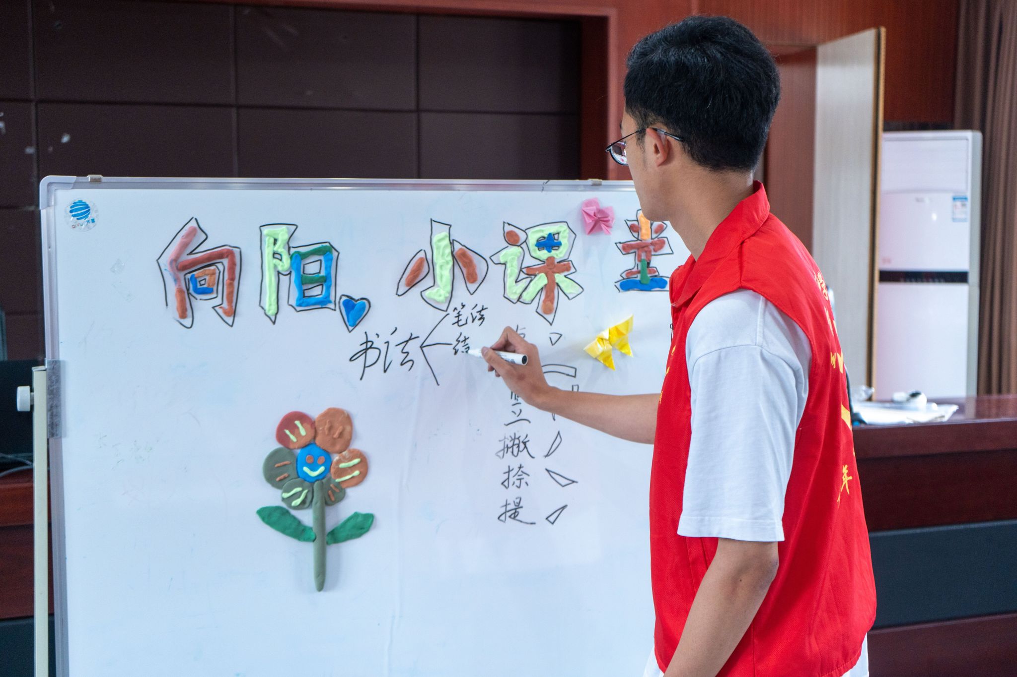 以笔绘出乡村振兴发展教育之路。“一路‘乡’阳”乡村振兴促进团携手鱼子村村委会,精心策划并开设毛笔书法课堂。旨在通过毛笔书法的教学,提升乡村青少年的艺术修养和创造力。为孩子们深入浅出地讲解毛笔书法的起源、历史背景以及传统技巧,让孩子们对毛笔书法的艺术内涵和文化价值有更深刻的认识,树立起孩子们对中华优秀传统文化的认同感和自豪感,争做中华优秀传统文化的传承者、践行者、弘扬者。