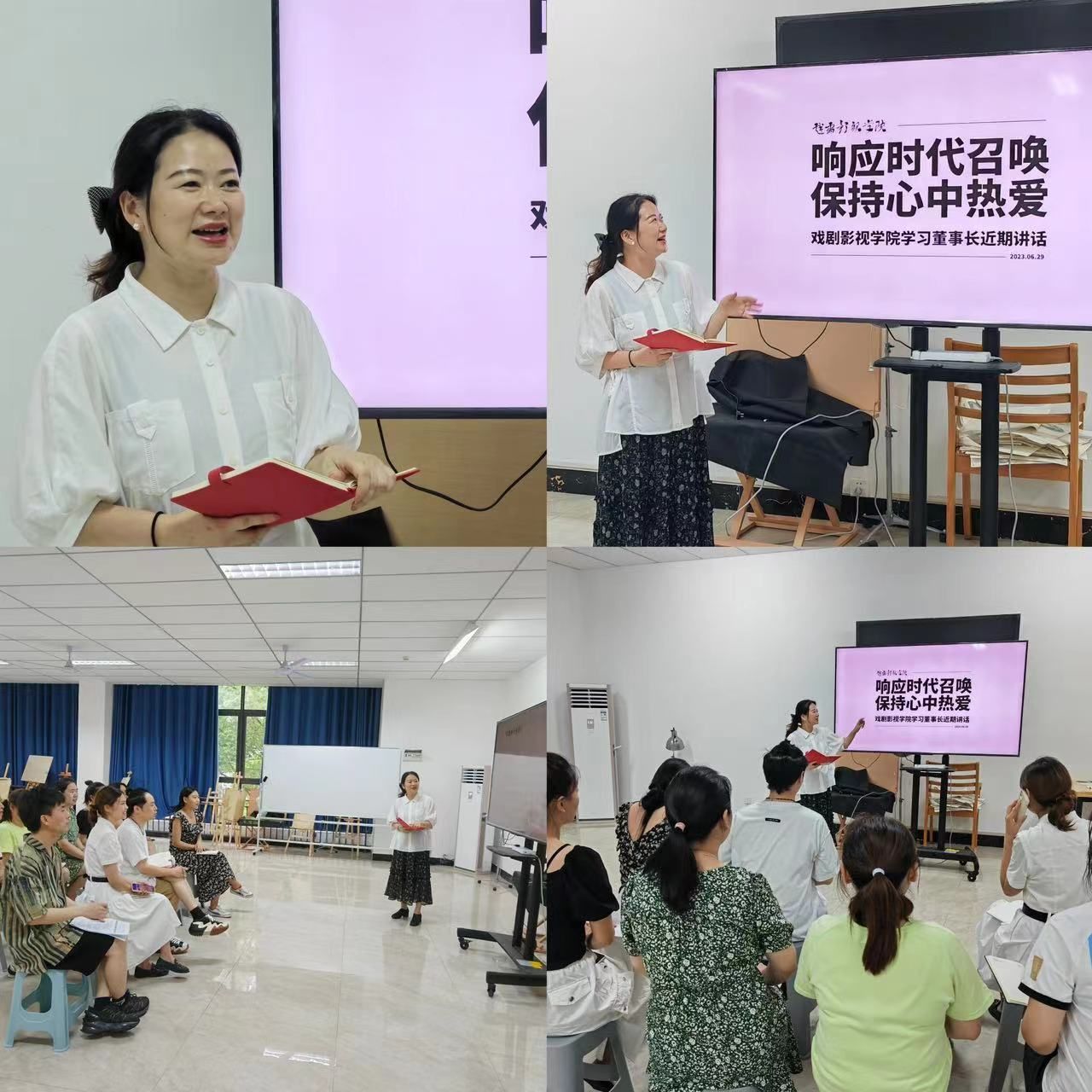 会议开始,学院全体教师在王芳副院长的带领下,对董事长系列谈话内容做了回顾,并各自结合自身情况分享感受。