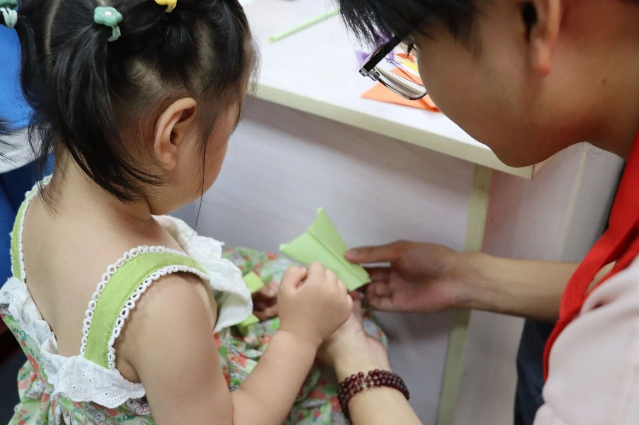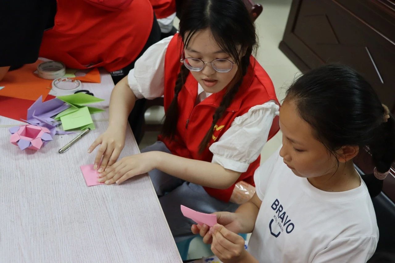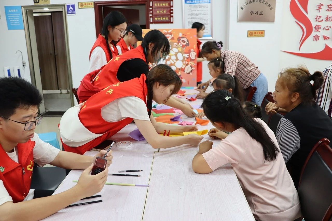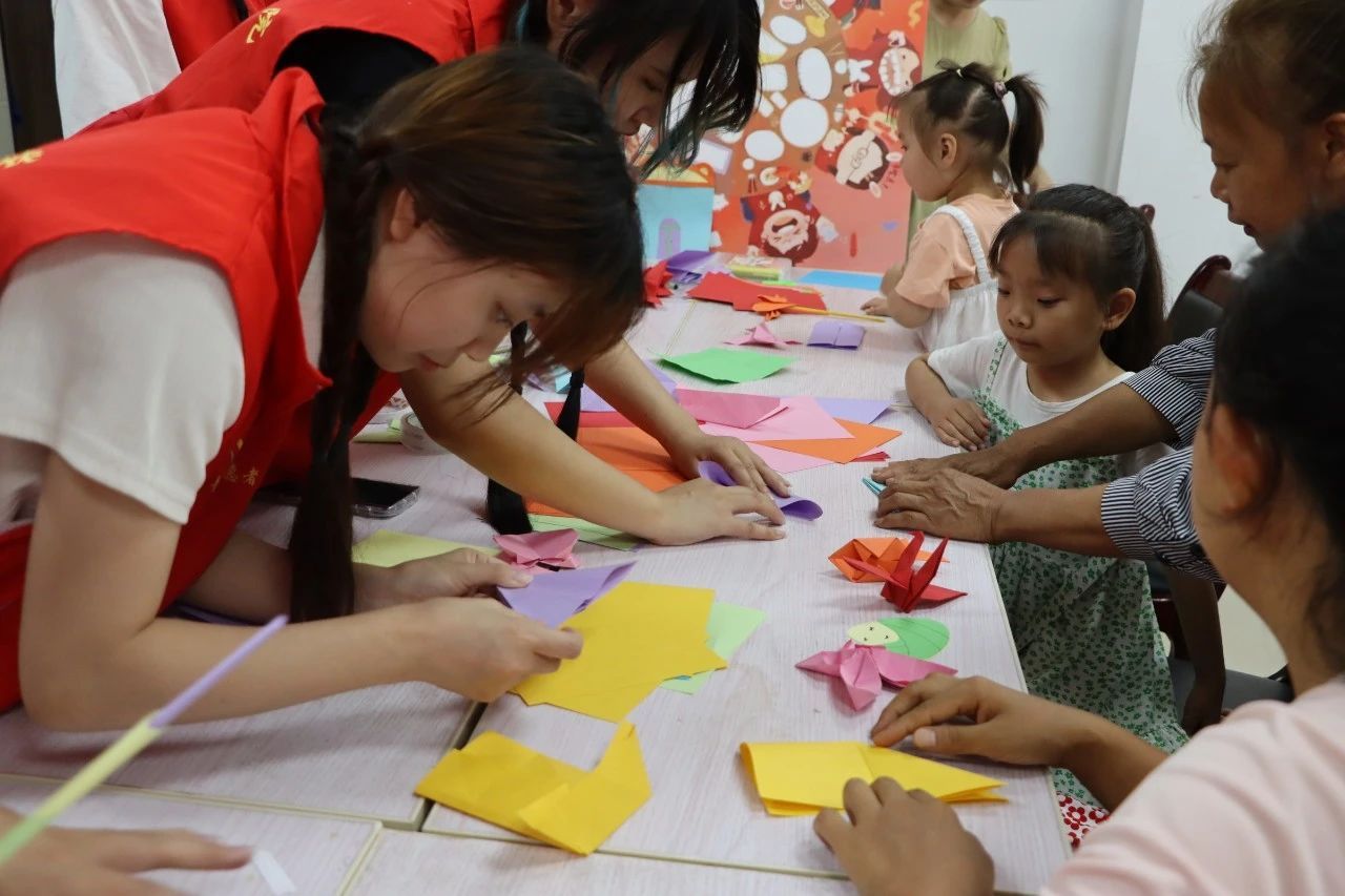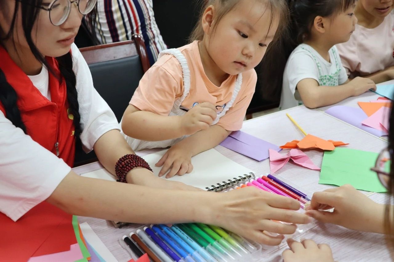 通过前面几天的三下乡活动,服务团对社区小朋友的喜好和兴趣有了一定的了解,为了照顾到不同年龄段的孩子,志愿者们采取了剪纸、折纸、刮画、水彩画等多种形式展开艺术课堂活动,有针对性地进行差异化教学,用生动有趣的引导为小朋友们科普艺术文化知识,让小朋友们都能找到自己喜欢的“绘梦”方式,去大胆绘制自己的梦画。
