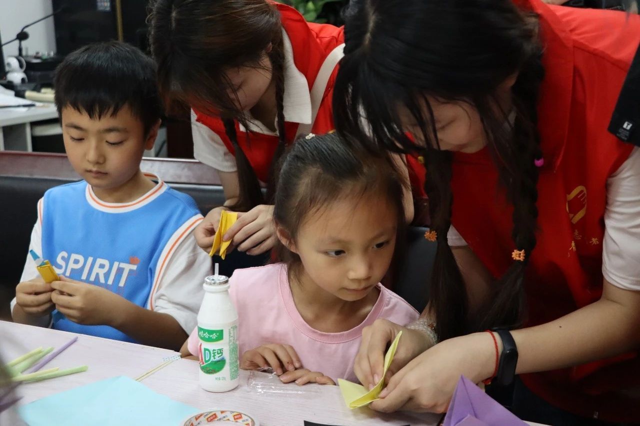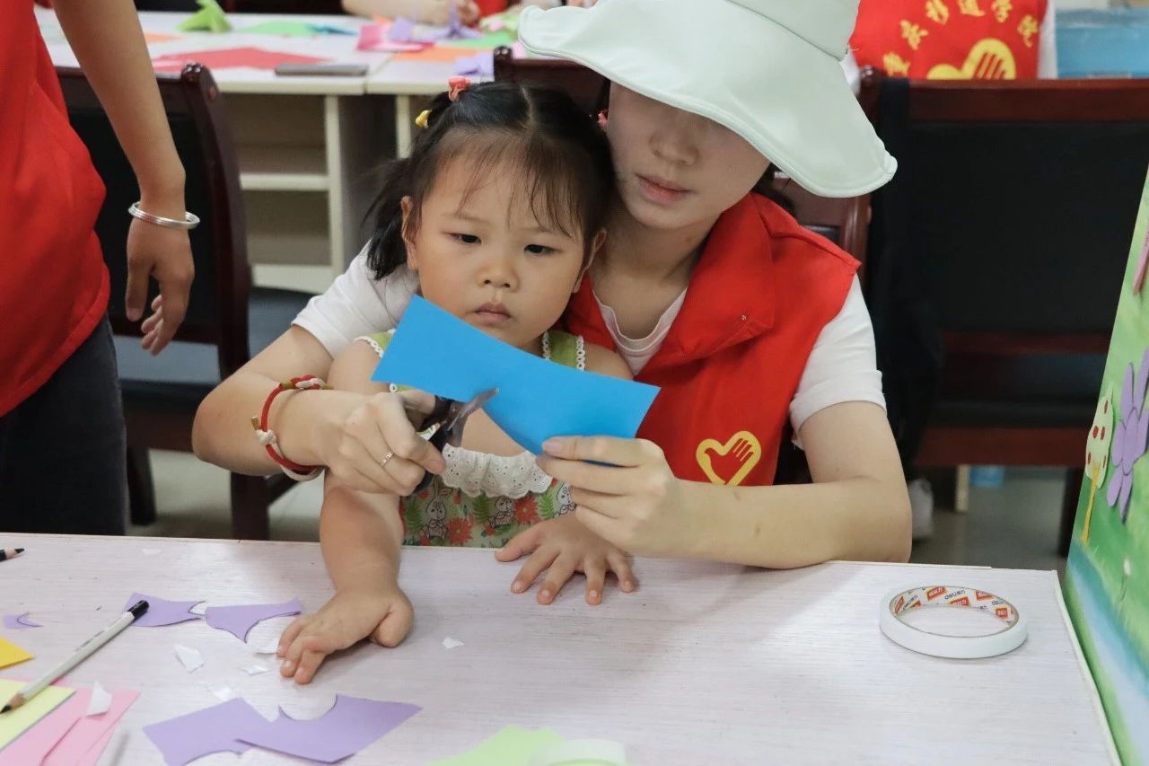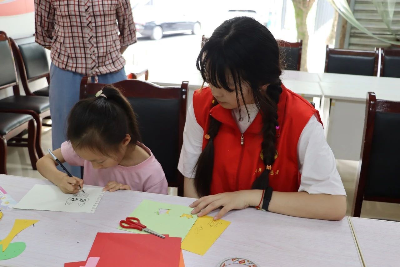 志愿者们耐心地指导孩子们画画和剪纸的技巧,从绘画图案的选择、色彩的搭配等几个方面给孩子们进行了细致的讲解。小朋友们听得津津有味,个个都跃跃欲试,在志愿者的带领下,小朋友们很快就开始了自己的创作。他们充分发挥自己的想象力和创造力,制作出了一张张可爱的卡通形象,如小兔子、小鱼、小星星等,用多彩的画笔,优美的线条,勾勒出一个个色彩斑斓的世界。