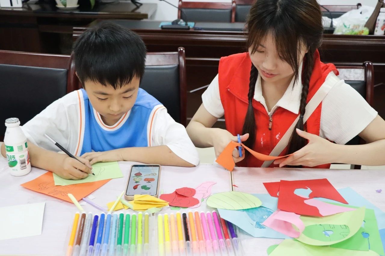 为提升浸水社区艺术文化氛围,拓展居民儿童的兴趣爱好,丰富小朋友们的假期生活,7月4日,水浸岩文化艺术服务团在浸水社区开展“志愿+艺术课堂”活动,让社区的孩子们在绘画剪纸的过程中培养兴趣爱好,提高对艺术学习的积极性,提升艺术修养,激发社区文化内生动力。