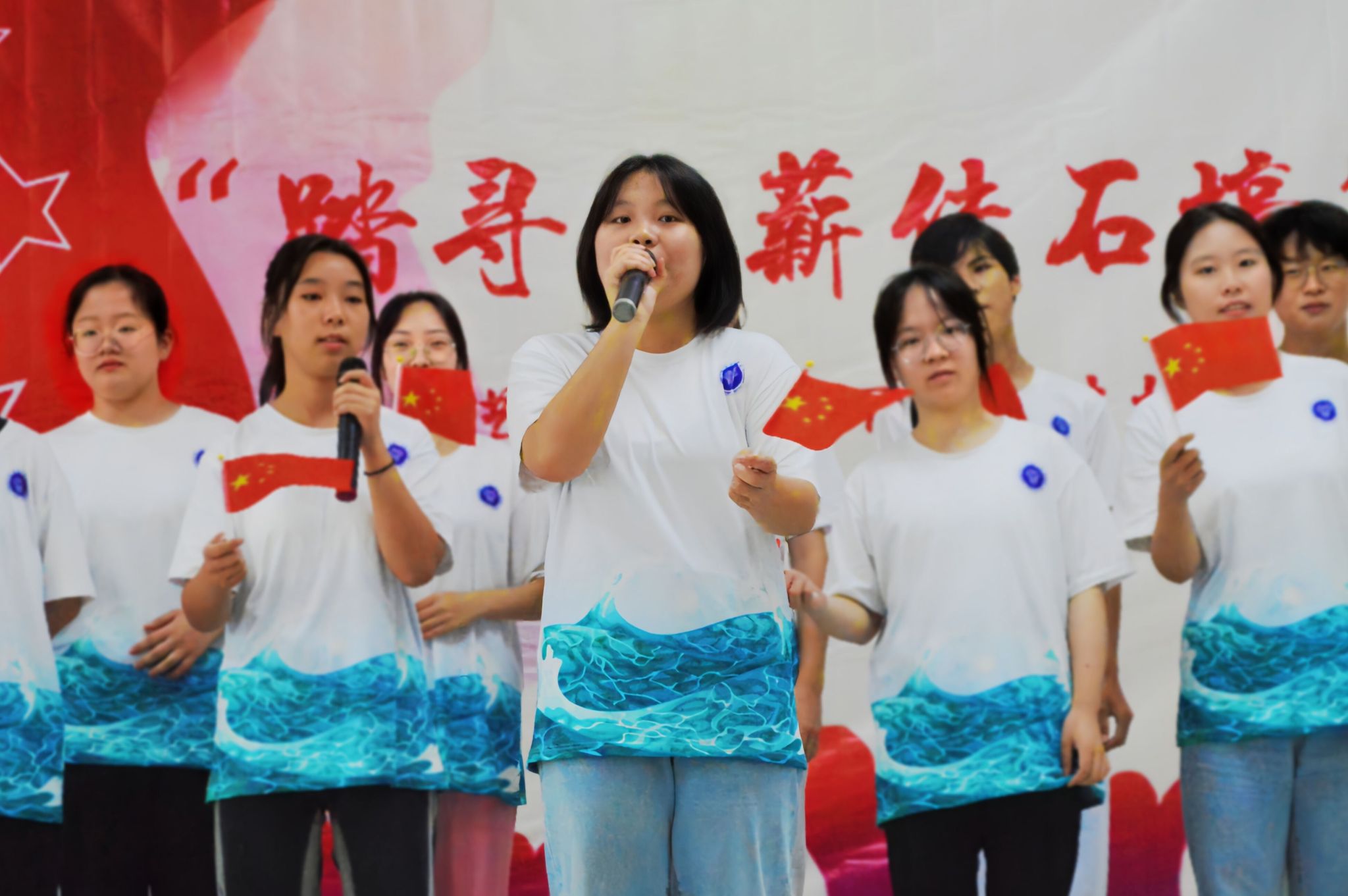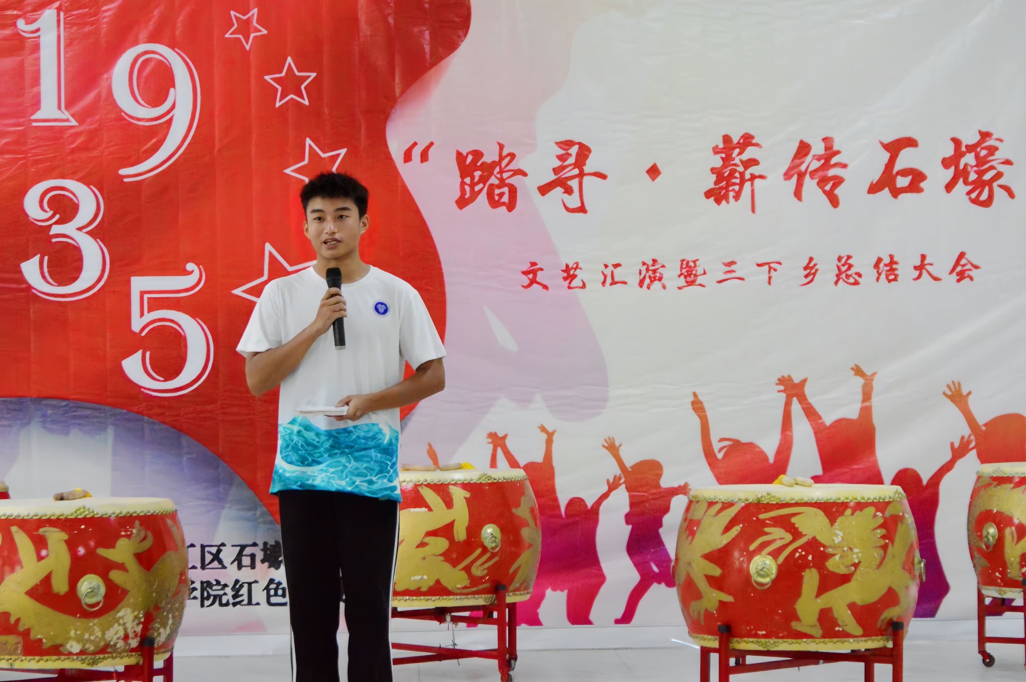 最后,由红色信使寻访团队长秦瑶同学进行总结发言。她代表整个团队向石壕镇村民这几天的帮助与支持表示衷心的感谢,同时,她也代表团队与石壕镇许下“十年之约”,承诺未来十年将一直合作。文艺汇演虽已结束,但薪火将在石壕继续燃烧。观众们带着激动而满怀希望地走出礼堂,将他们所见所闻带回家,传递给更多的乡亲们。薪火的燃烧将会激发更多人对红色文化的热爱,让红色精神在这片土地上永不消逝,将这座小镇打造成为红色文化的重要象征,吸引更多的人前来参观、学习与体验,进而推动这座红魂小镇的发展。
