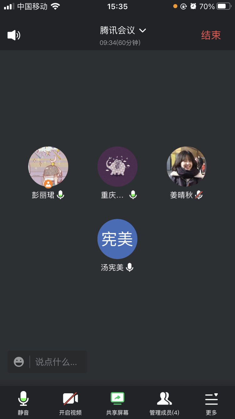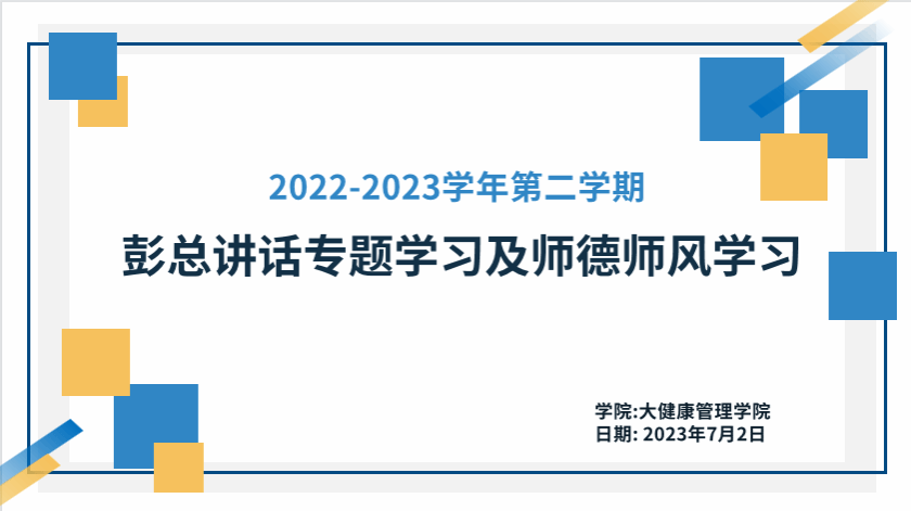 一个合格的教师应该有良好的职业道德、健康的心理素质和为教育事业无私奉献的敬业精神,有新时代所推崇的新思想、新观念,有探索和创新精神。为更好地提升学院教师职业素养与专业能力,大健康管理学院在2023年7月2日开展了2022-2023学年第二学期彭总讲话专题学习及师德师风学习线上会议,本次会议参加人员有林毅院长、姜晴秋老师、汤宪美老师和彭丽珺老师。