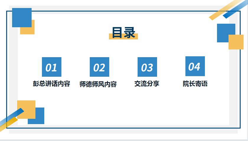 会议伊始,林毅院长带领大家共同学习了彭总讲话和师德师风内容,林毅院长提到学院教师要从思想素养与专业能力两个方面不断自我提升。作为新时代的青年教师,我们要紧紧团结在党的周围,深入领会习近平新时代中国特色社会主义思想和党的二十大精神,在深学笃行中提高理论素养,提高依法从教意识,以正确的价值观引导学生,时刻警惕教学事故发生。新教师要不断在教学过程中打磨教学本领,积极发挥主观能动性,向优秀教师交流学习,复制可复制的,创新能创新的,专业能力是教师的立身之本,要紧紧围绕“提高教学质量”这个主题。