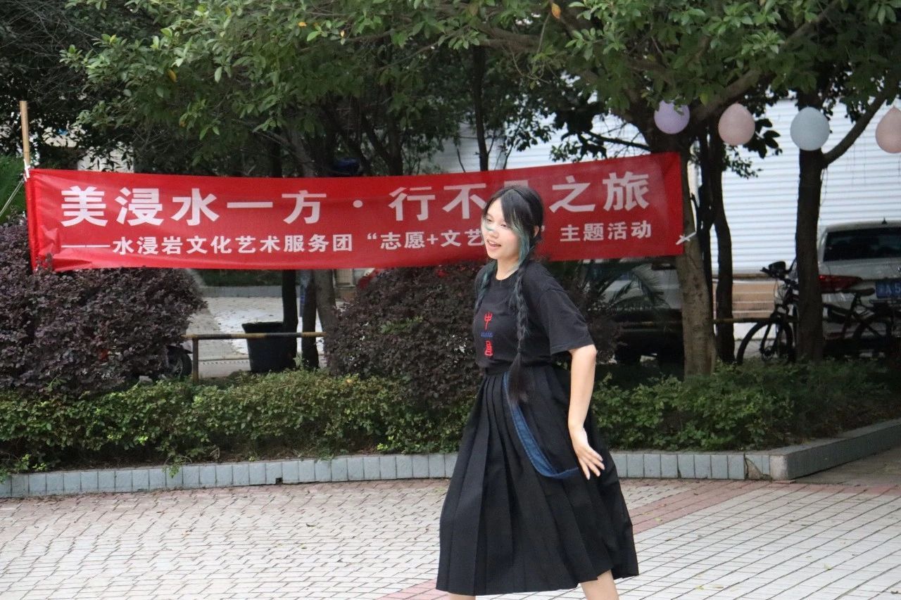 为充分展现新时代青年大学生良好的精神面貌,丰富社区文化生活,7月6日,水浸岩文化艺术服务团与浸水社区便民服务中心共同开展“志愿+文艺汇演”主题活动暨浸水社区第一届社区文化节,服务团成员和社区小朋友们一同参与表演,浸水社区李安连书记、水浸岩文化艺术服务团指导老师曾玉娇、潘锐与居民朋友们一起观看演出。本次文艺汇演,让校园艺术走进社区,为社区居民带来丰富多彩的艺术体验,也为水浸岩文化艺术服务团的“三下乡”之旅画上了圆满的句号。