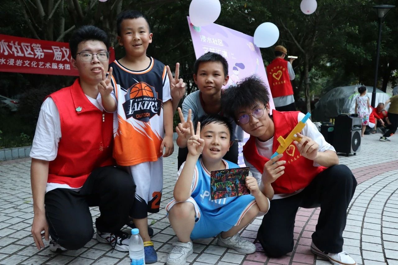 志愿者间为期一周的感动与拼搏,汗水与收获,都伴随着夕阳在广场舞中渐渐落下帷幕。此次文艺汇演暨社区第一届文化艺术节的顺利开展,不仅是将“三下乡”文化涂鸦、义务画像、读书小会、故事宣讲、多彩反诈、艺术课堂等活动无数个精彩的瞬间做了总结呈现,更是通过文艺节目演出、知识科普宣传,把理论政策、艺术普及、反诈技能及优秀的精神文化产品送到群众家门口,打通了宣传、教育、服务群众的“最后一公里”,满足了社区群众多样化、多层次精神文化需求。希望在水浸岩文化艺术服务团成员的共同努力,能够让艺术之花在社区居民的心中生根发芽,让志愿精神之树在社区茁长生长,孕育出一片生机盎然的文化艺术硕果。