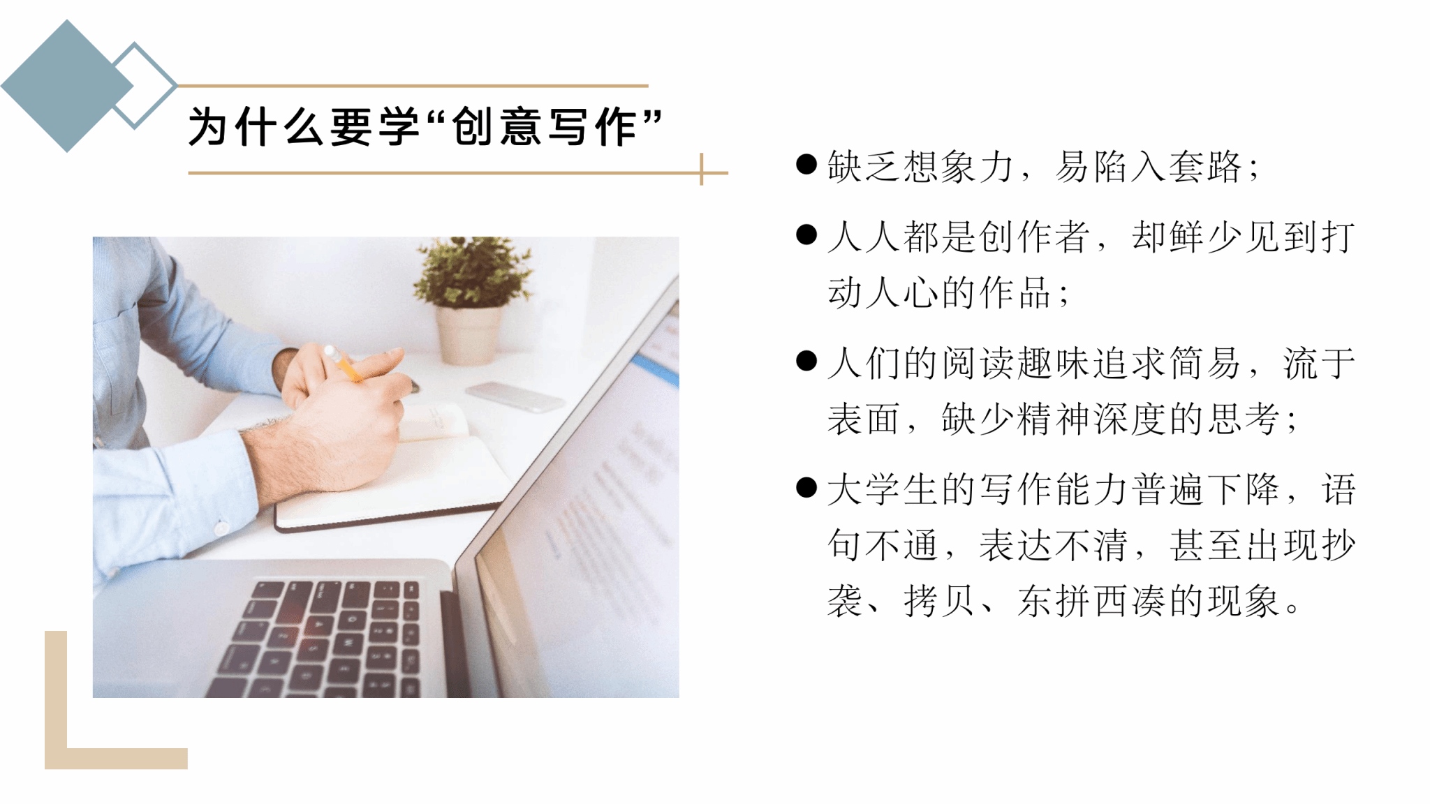 (丁一钒)很荣幸加入创意写作学院大家庭,感谢几位面试老师对我的认可,让我有一方舞台继续我的职业规划。通过本次线上岗前培训,我有以下几点心得: