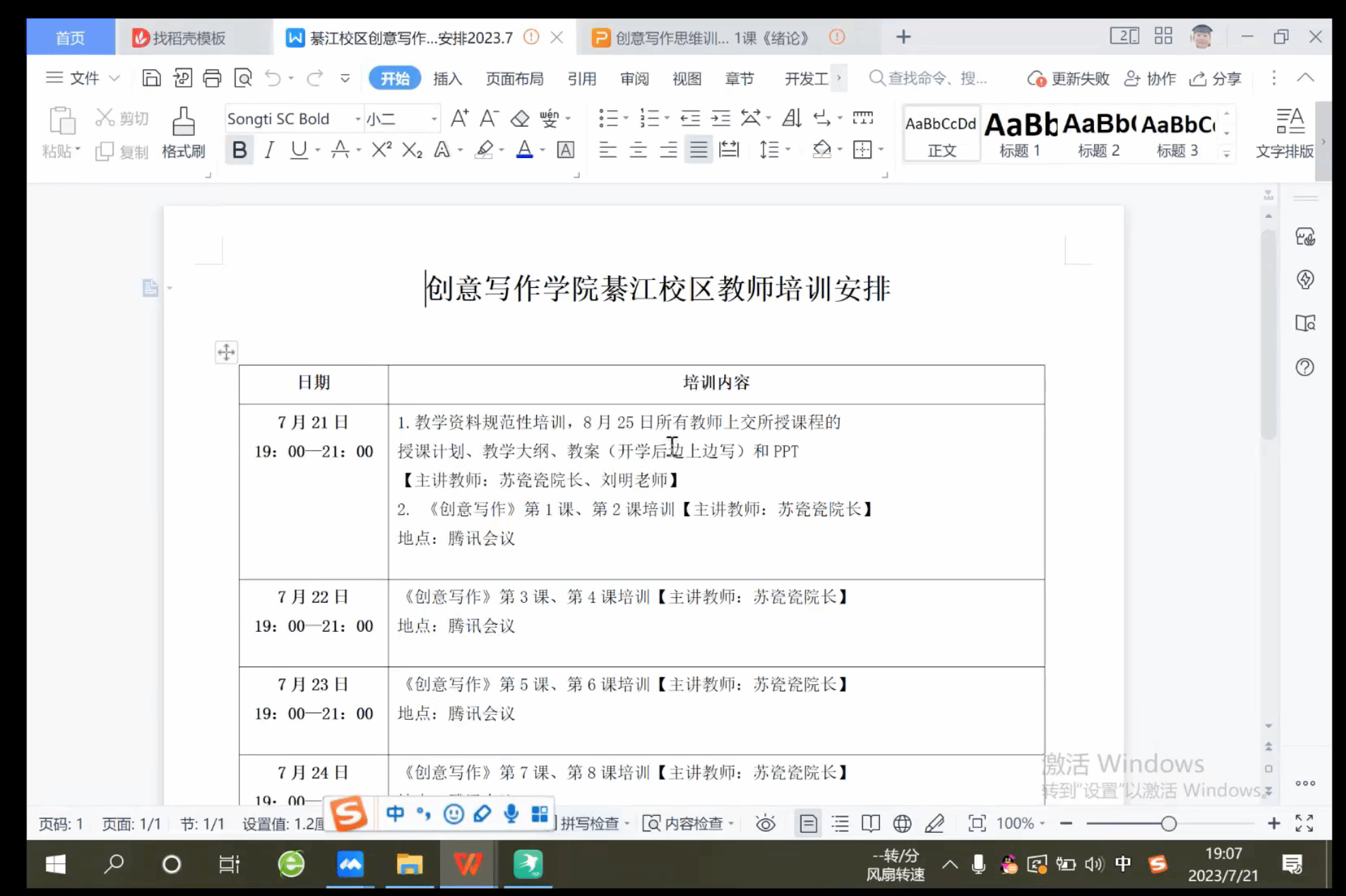 此次培训,分为教学资料规范性培训和课程培训。课程培训包括面向所有大一新生开设的必修课《创意写作》,以及作家班特色课程《创意写作思维训练》《创意阅读》。