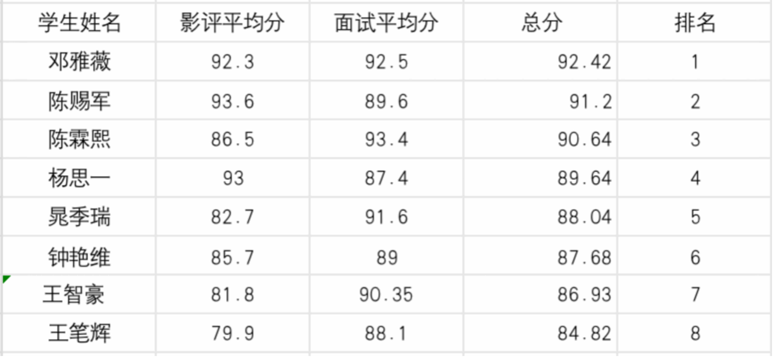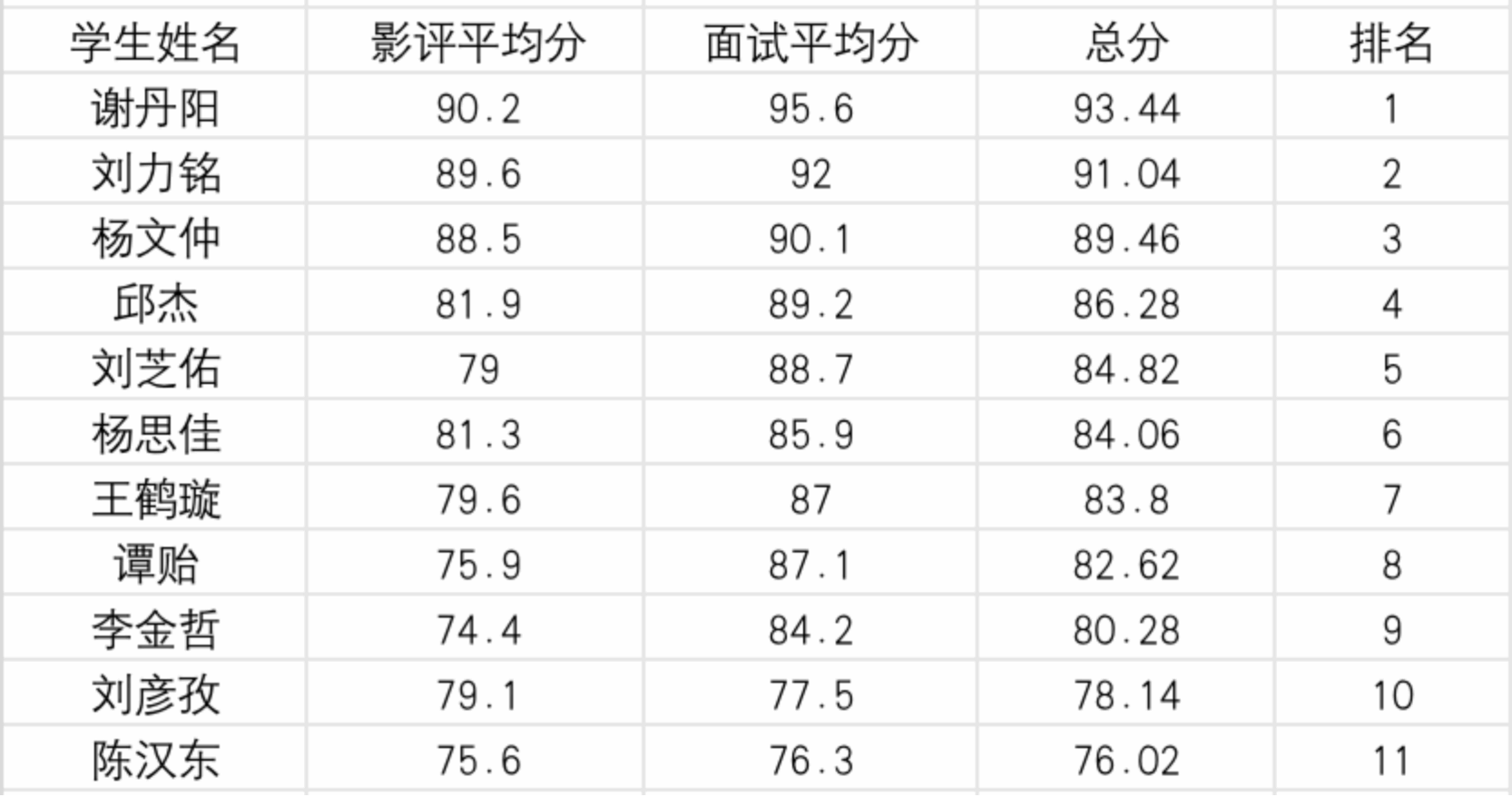(合川校区)奥斯卡复选分数统计表: