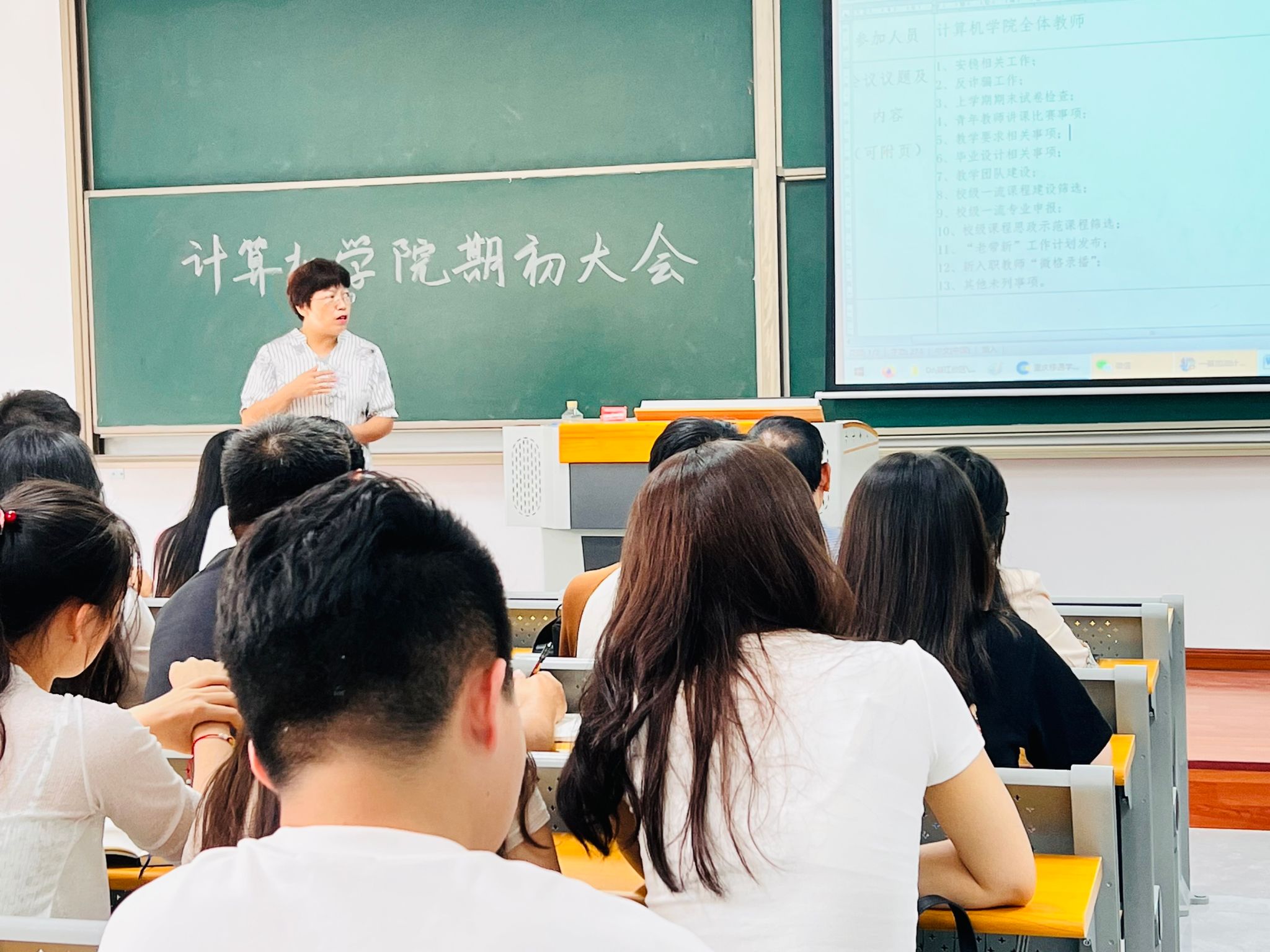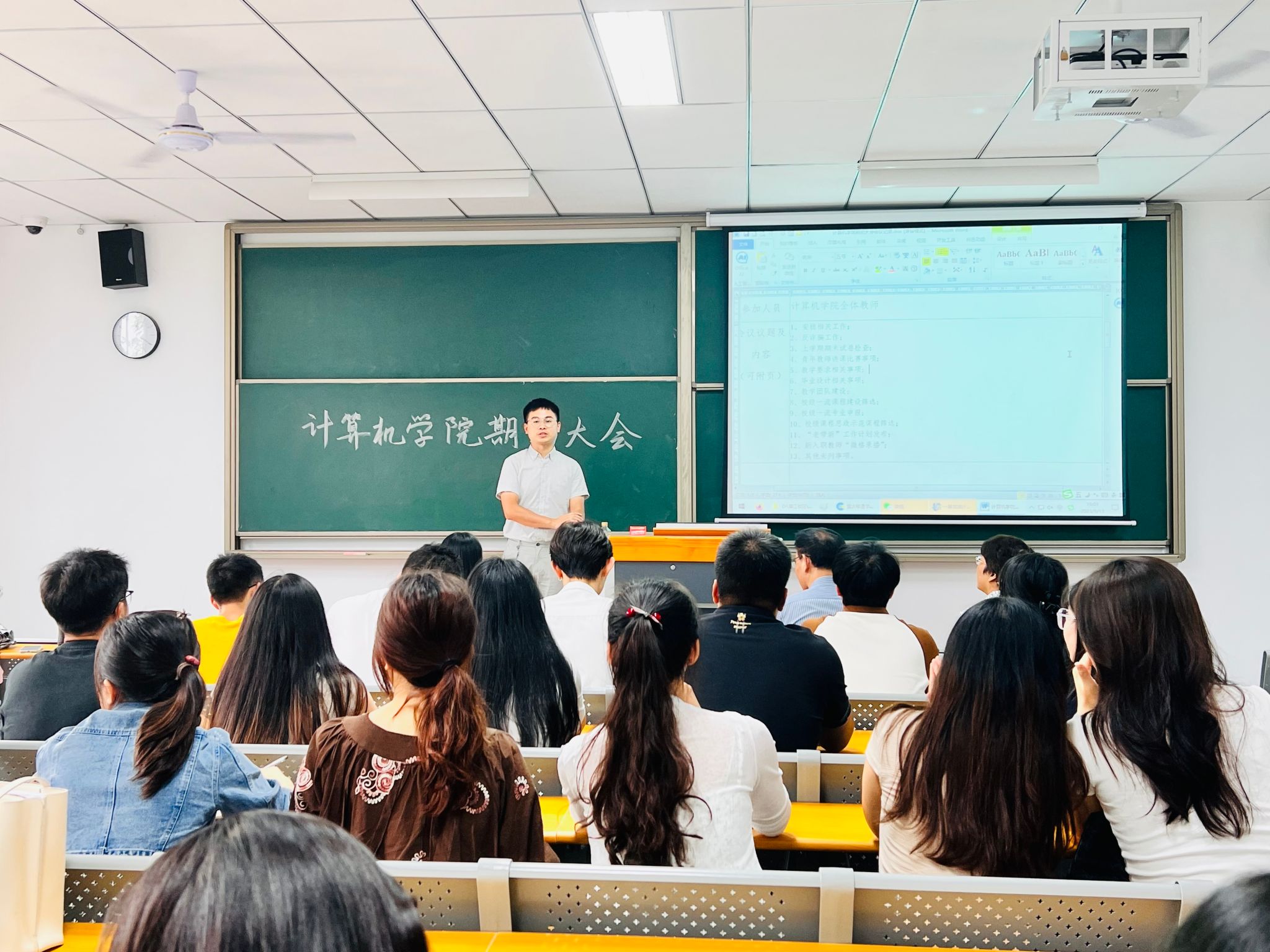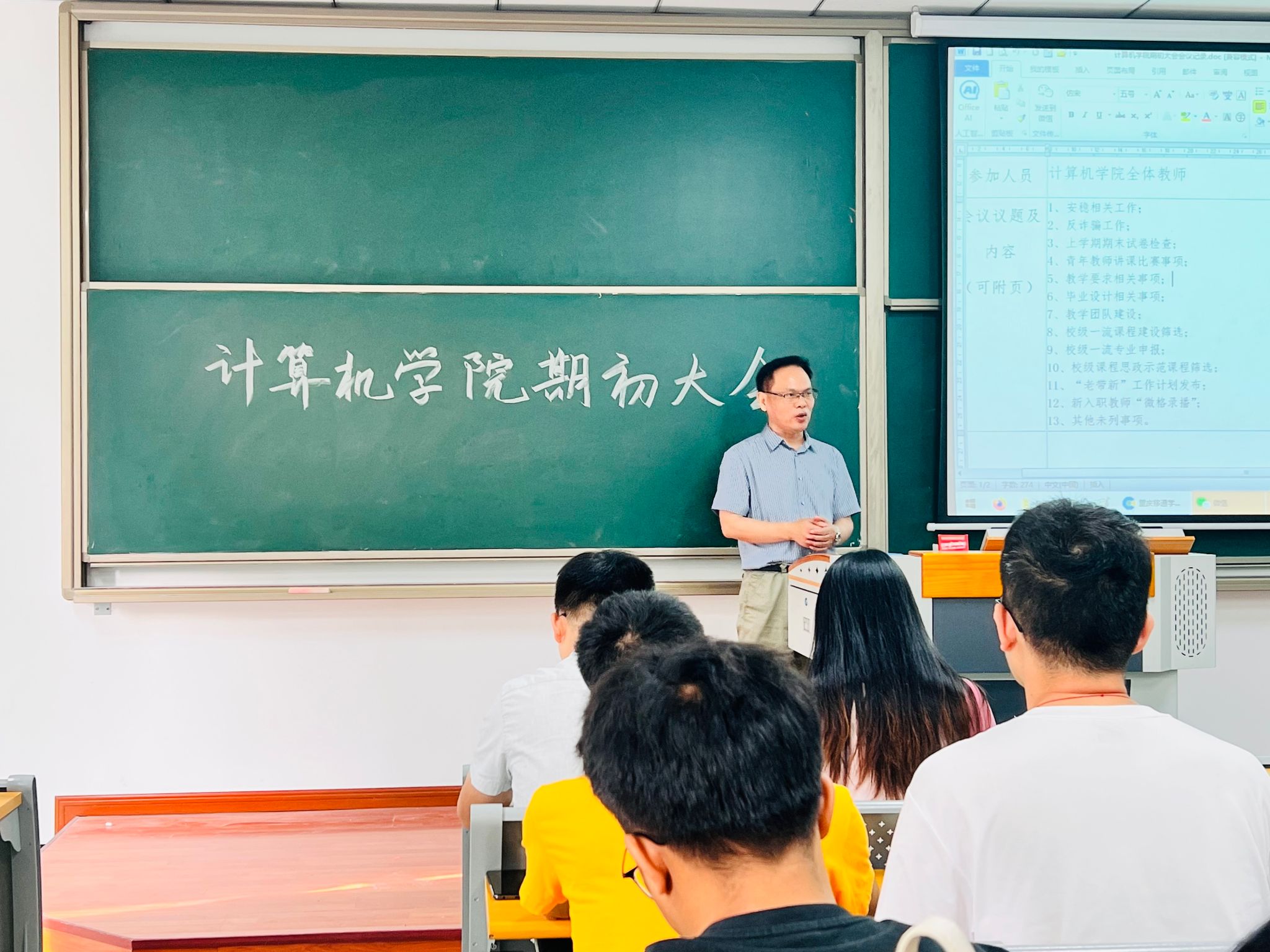 2023年9月13日16:00,计算机学院在勤者楼309成功召开学年度期初工作大会,学院全体教职工共同参与。会上,向碧群院长对2023-2024新学年的工作做了全面部署,林泽金院长做了细致讲解。本次会议旨在为全体教师提供一个交流学习的平台,共同研讨教学方法、共享教学经验,以提高教学质量和培养创新创业型人才。