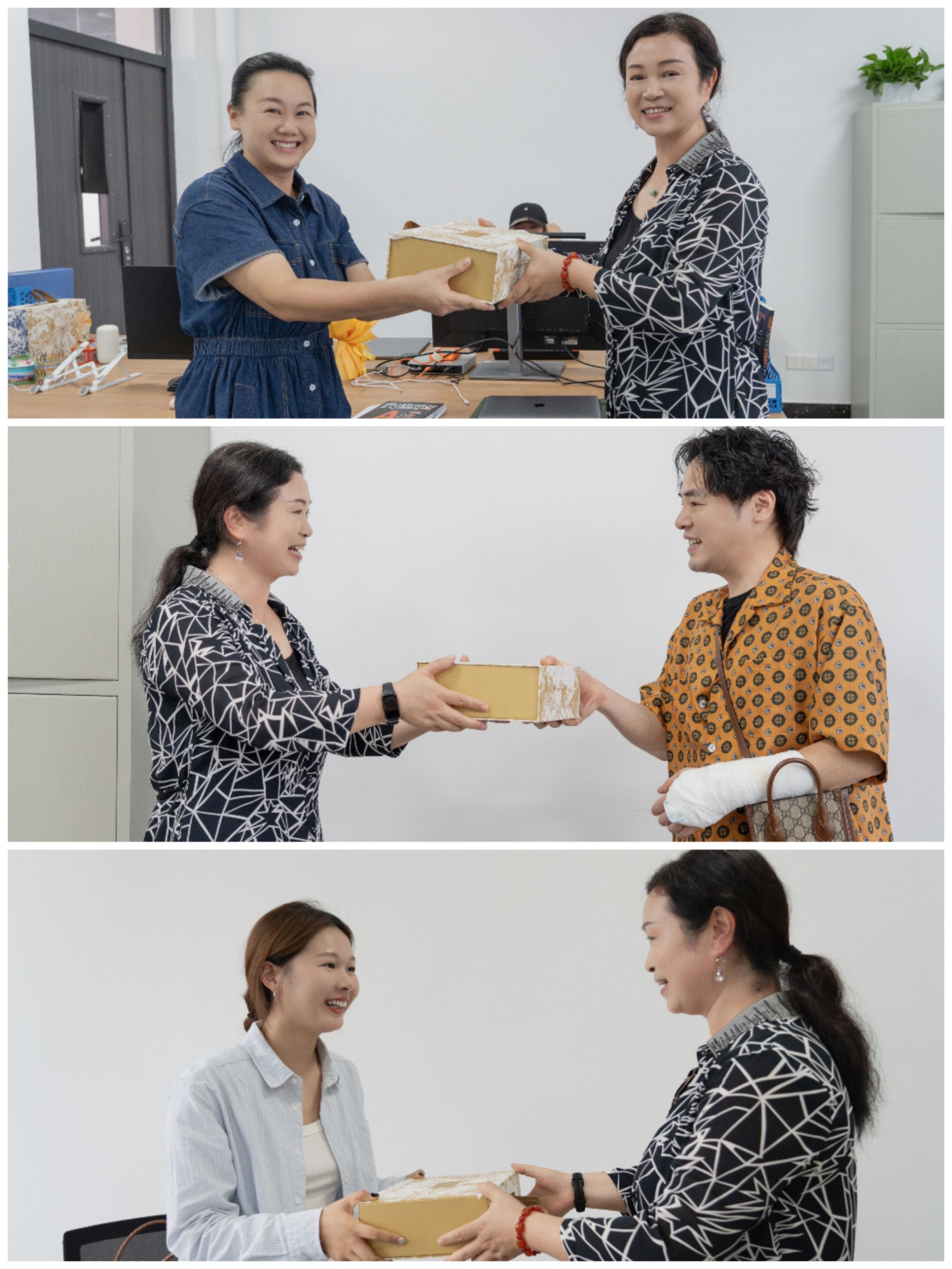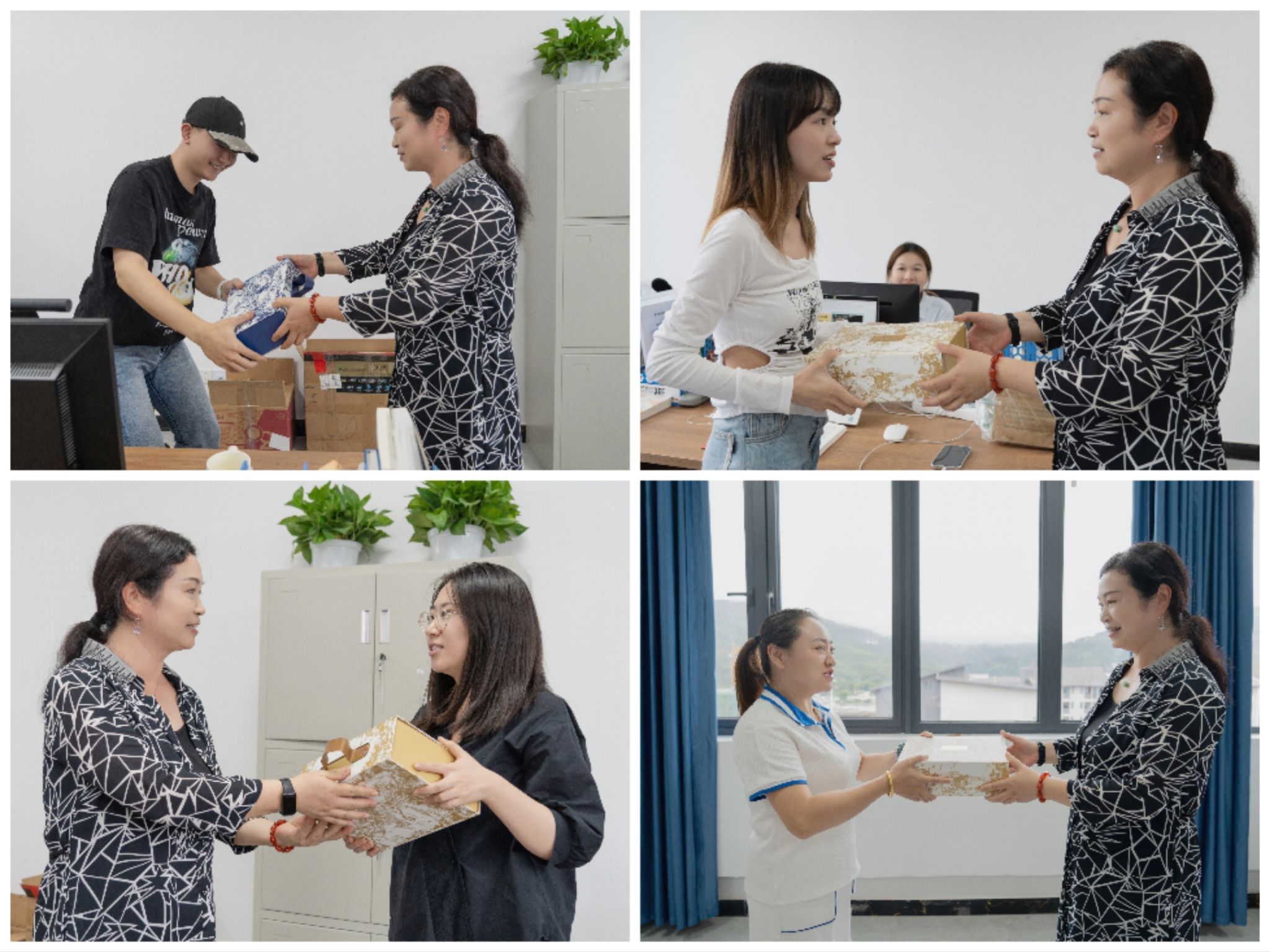 随后,孙校长代表学校向老师们送来了教师节礼物,对于很多戏影的老师们,这是他们职业生涯的第一份礼物,也意味着大家教育生涯的开端。老师们在惊喜于礼物的精美与体贴的同时,也感受到了学校对于教学一线的期望与重视。戏剧影视学院副院长王芳表示,戏剧影视学院全体教师将带着学校沉甸甸的期盼奋力前行,我们不仅要将戏影学生们培养成为对社会发展有用、对行业飞跃有益的应用型人才,更要在学校的发展过程中,突出戏剧影视学院的艺术类作用。我们将持续在美育氛围建设、学校宣发推进、学校形象打造方面贡献自己的力量,让移通学院成为最美的、最有艺术氛围和人文素养的中西部一流应用型本科院校。