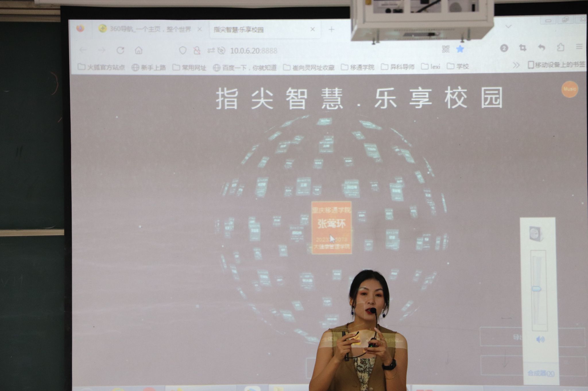 体验课起始,崔老师首先对各位初入学的小伙伴表示最热烈的欢迎和最诚挚的祝福,期望他们能够拥有一个完满+完美的大学生活。其次基于我校智慧校园信息化建设现有的情况,向2023级新生介绍了我校移通学院綦江校区的基本情况,从智能生活到智慧教学,让小萌新们对校园环境有了更深入的了解,也在心里埋下了对大学生活好奇的种子。