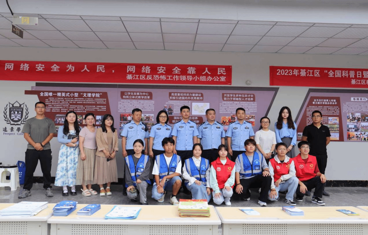 出席本次活动的嘉宾有:綦江区反诈骗中心副主任何容容警官,綦江区反诈骗中心民警高阳警官,重庆移通学院綦江校区通识教学部副主任张艳老师,通信与信息工程学院团总支书记田海燕老师,校区安稳办谈胜主任,通识教学部冯婷、洪欣琳老师,保卫处柴医保老师,飞鹰反诈宣传志愿服务专项支队邓艳老师等,共计干警、师生200余人参与。