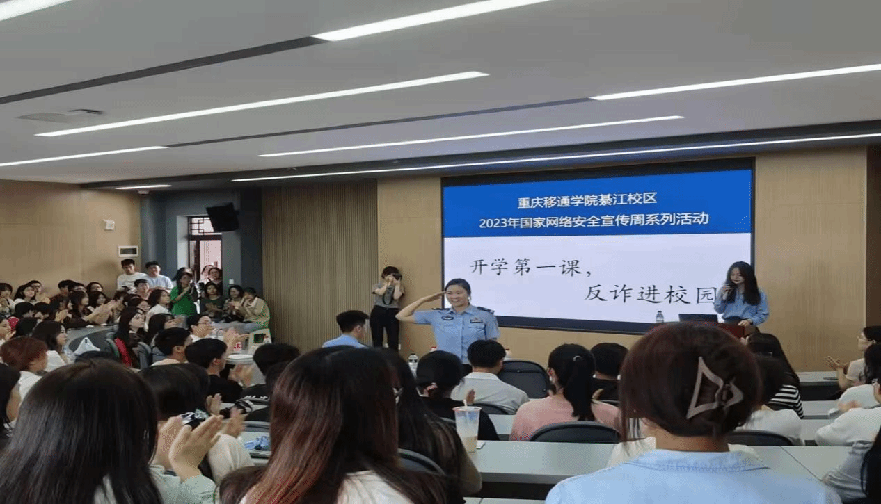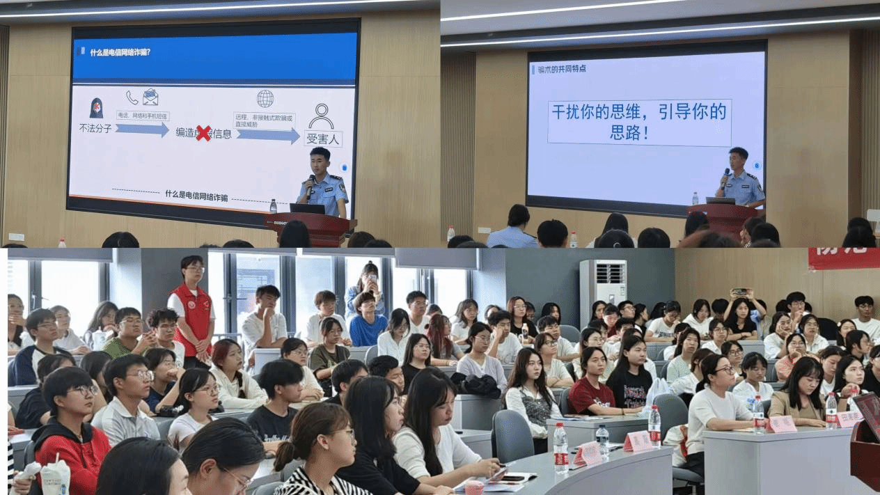 綦江区反诈骗中心民警高阳警官为同学们带来了一节生动的“开学安全第一课”。他讲解了电信诈骗的特点与识别公式,以“你身边的真实案例”切入,通过分享在我校及周边高校发生的真实案例,深入剖析刷单返利诈骗等犯罪的具体形式,并总结出骗术的共同特点,即“干扰你的思维,引导你的思路!”